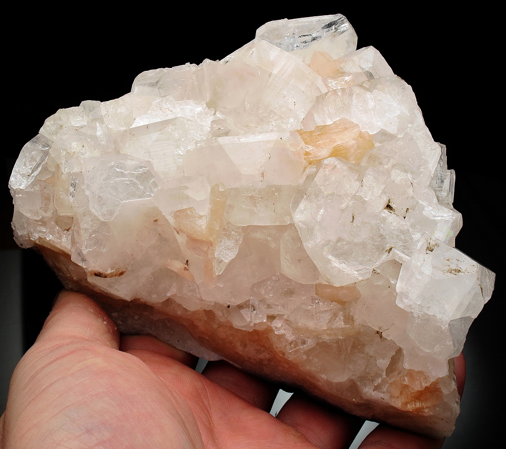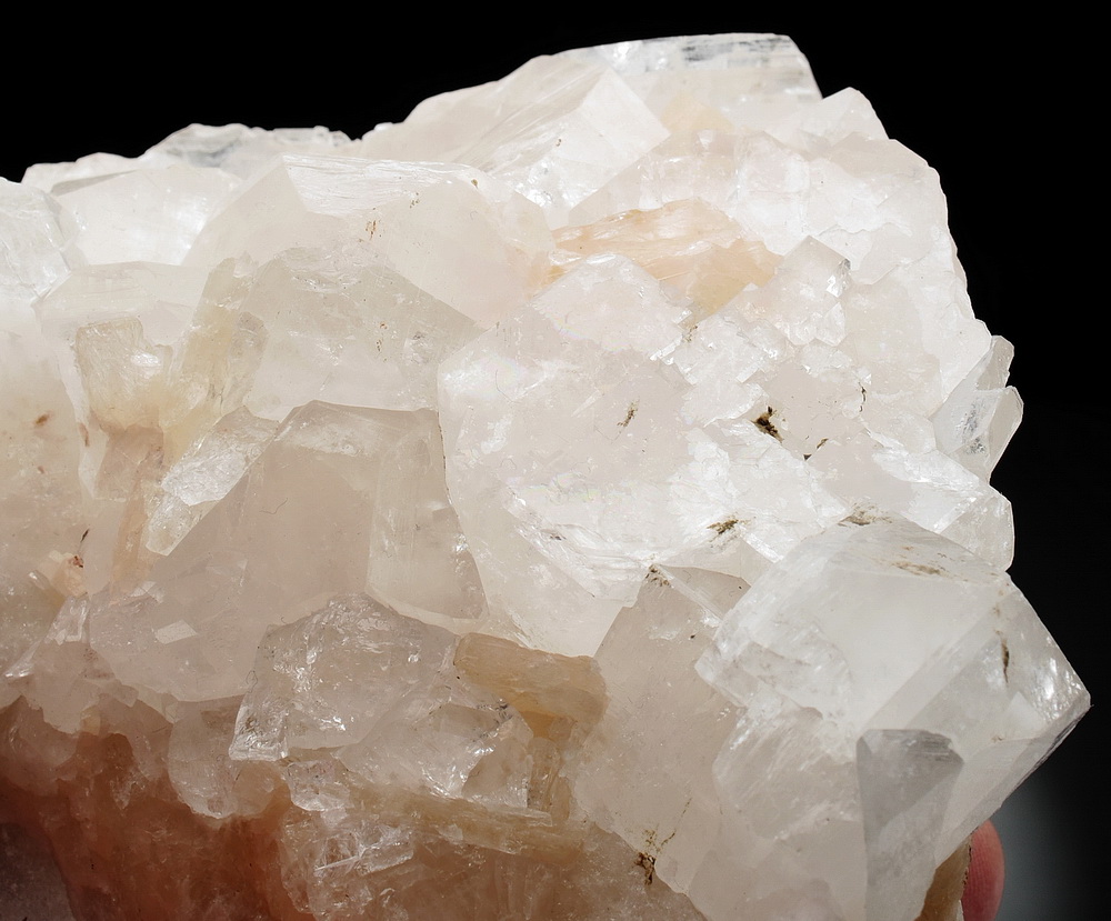 Błyszczący zrost kryształów apofyllitu.