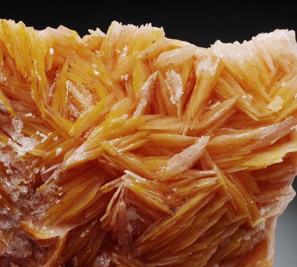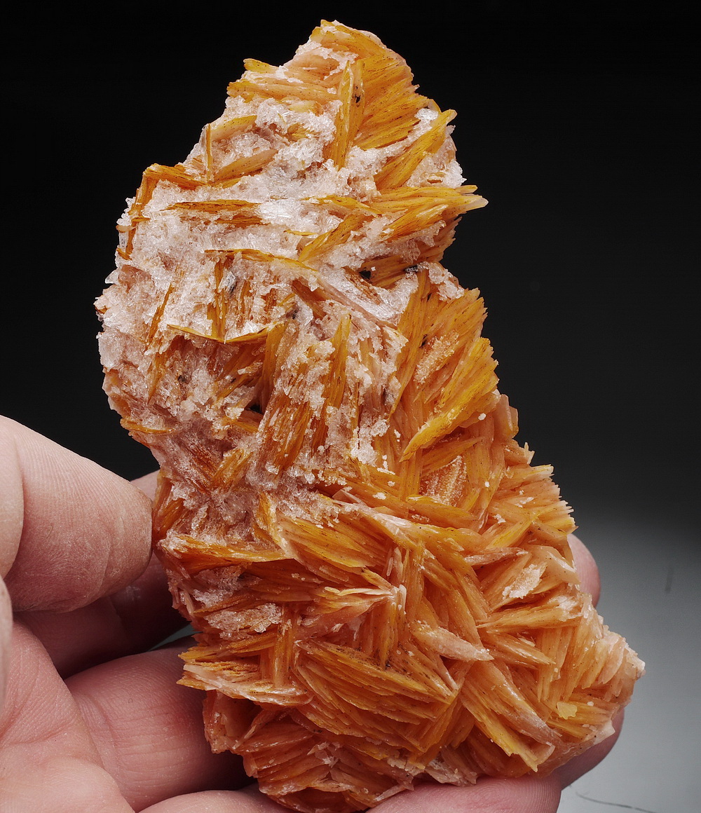 Szczotka blaszkowych kryształów barytu z cerusytem.