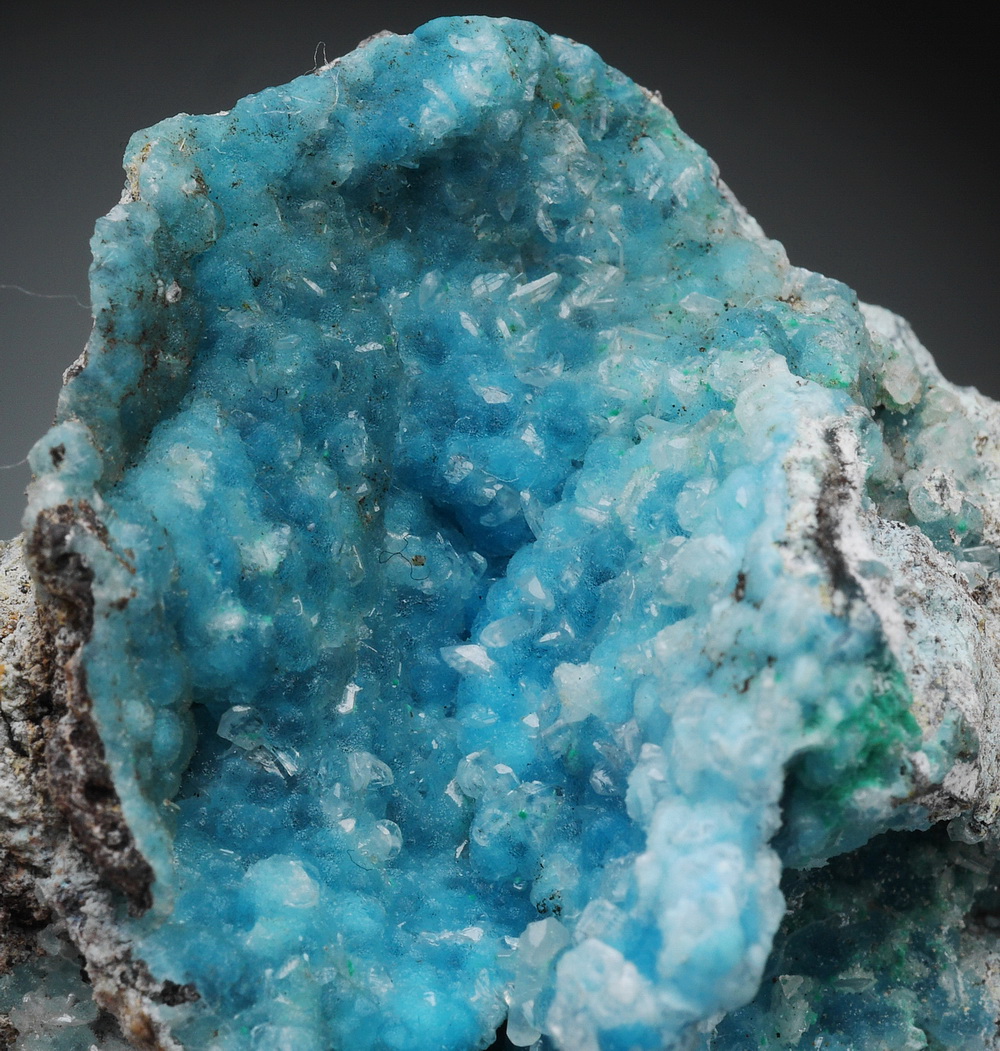 Skupienia naciekowych / kolomorficznych skupień hemimorfitu.