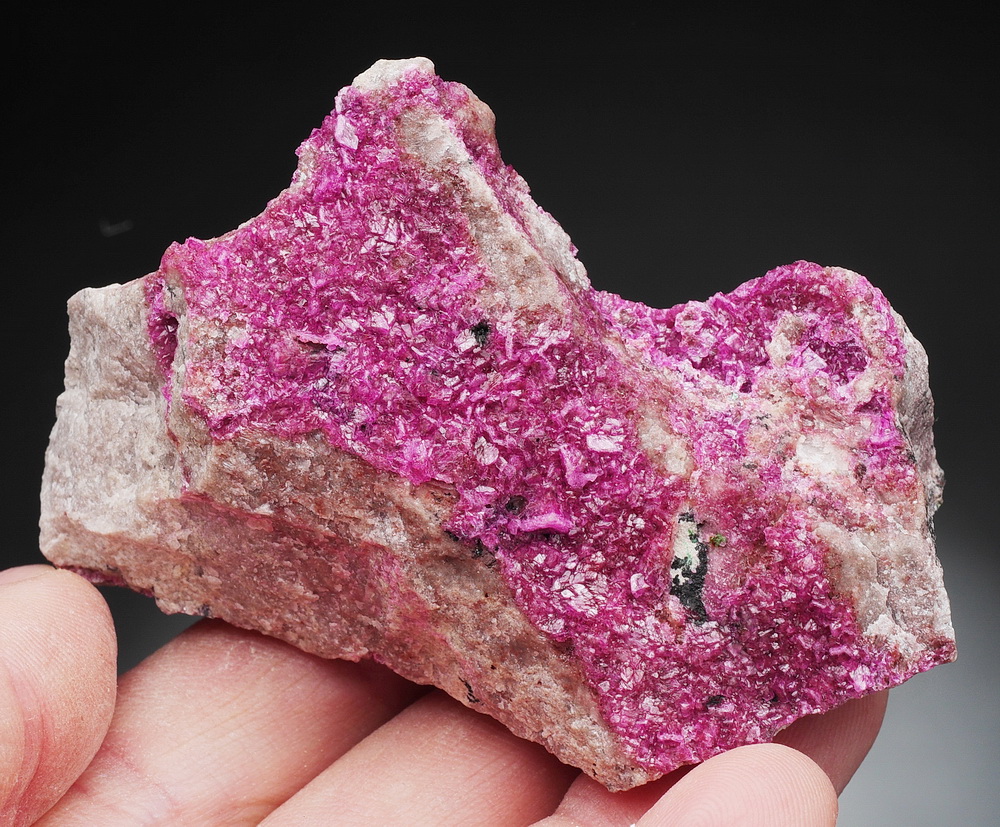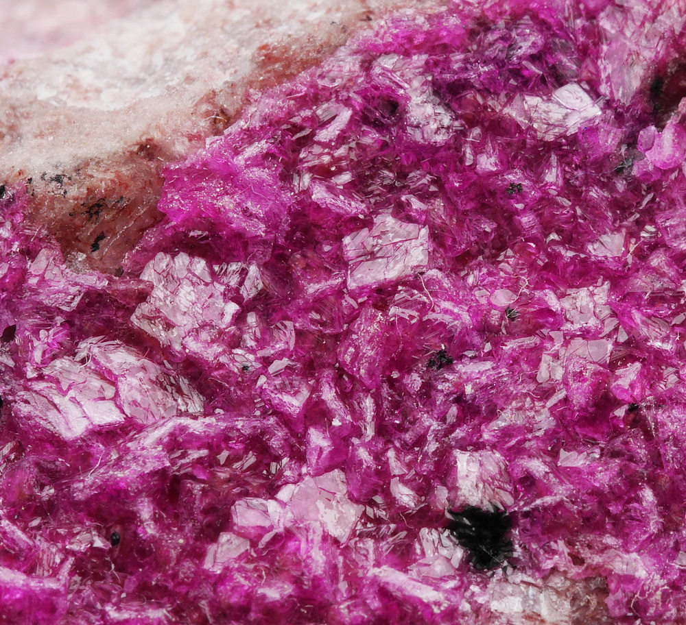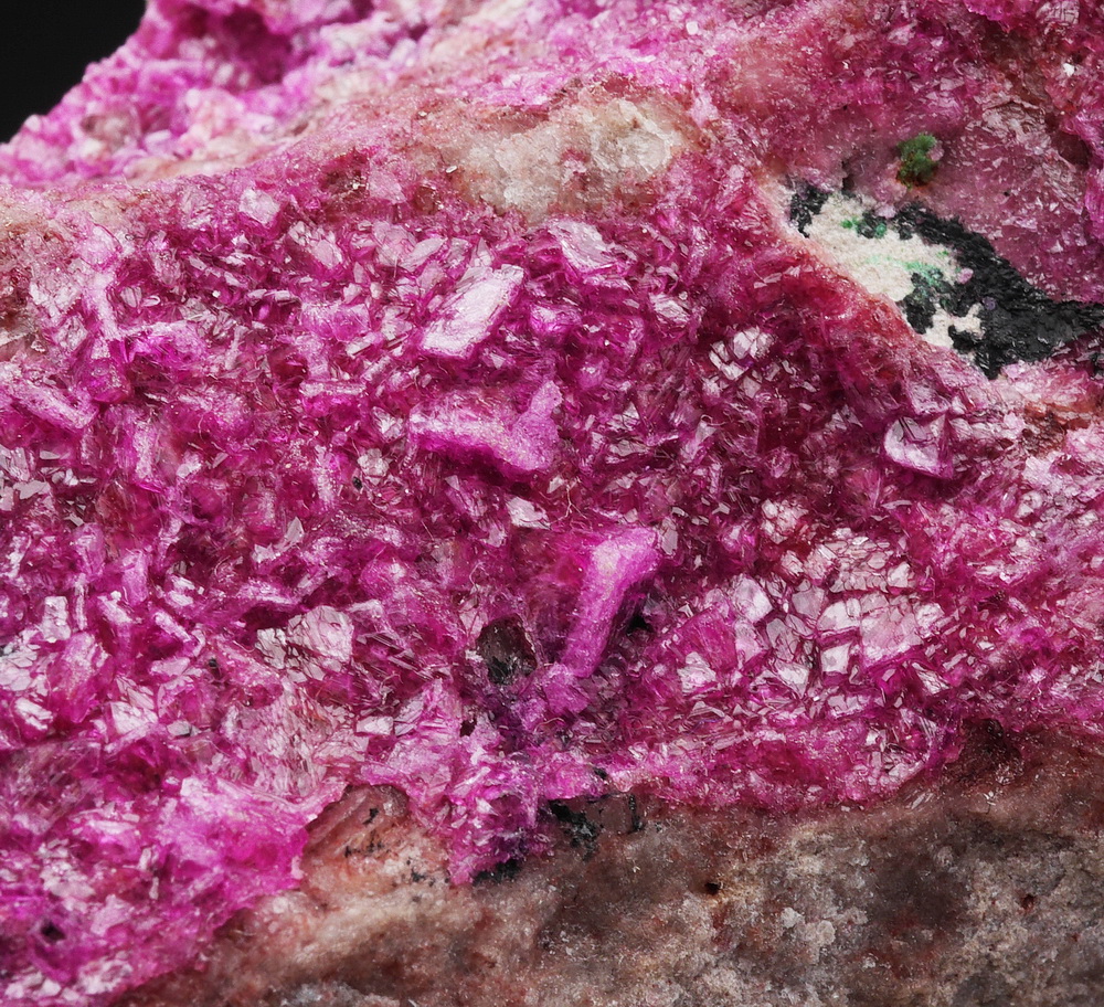 Druza błyszczących kryształków rzadkiego kobaltodolomitu na matrixie.