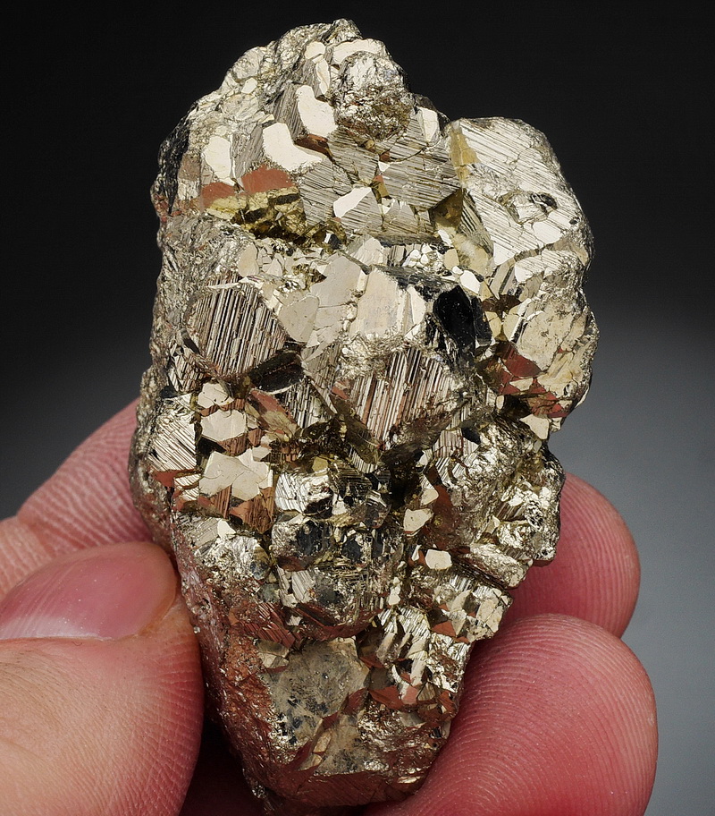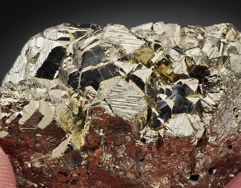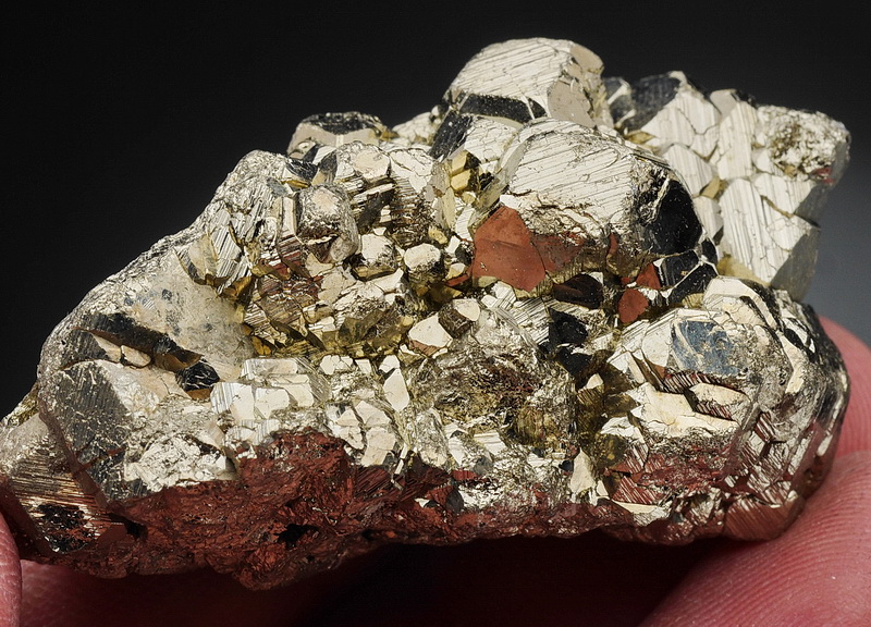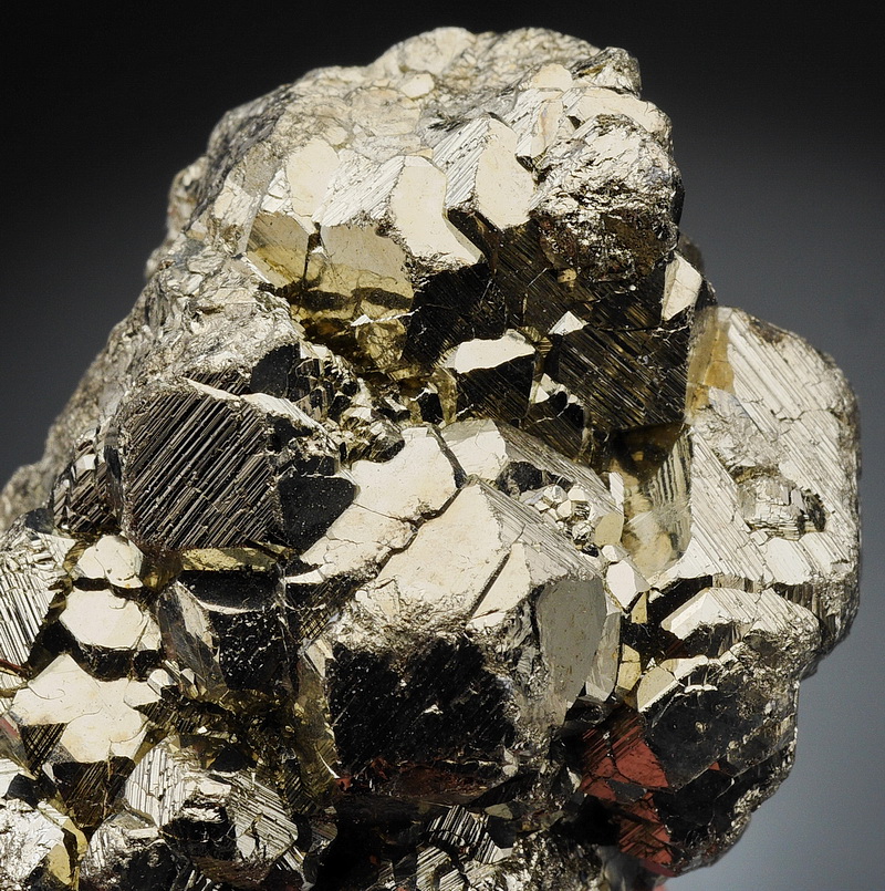 Błyszczący zrost kryształów pirytu.