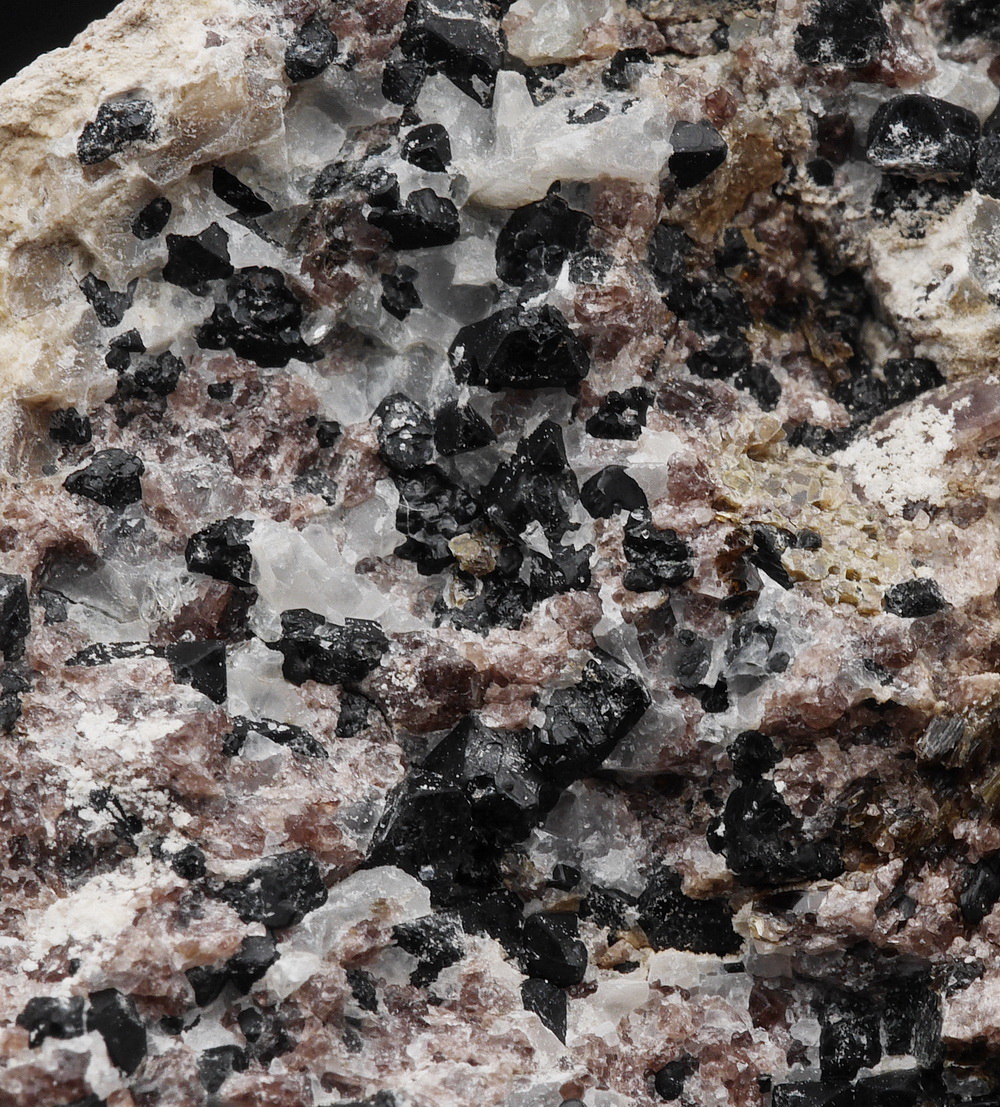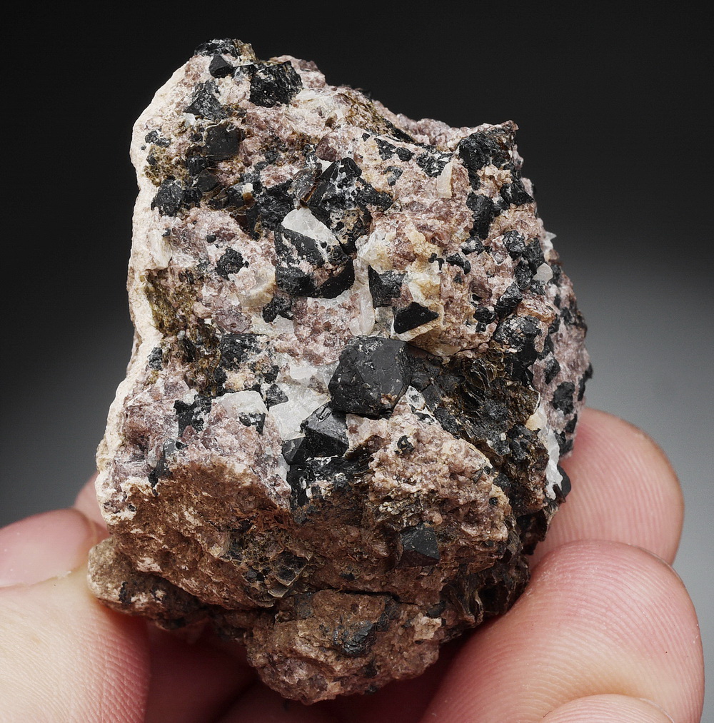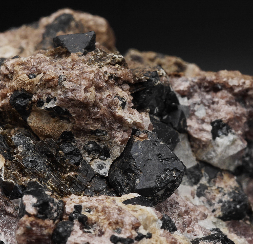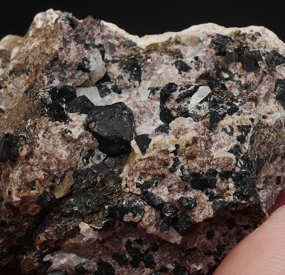 Kryształy spinelu - pleonastu w matrixie zbudowany z flogopitu i diopsydu.