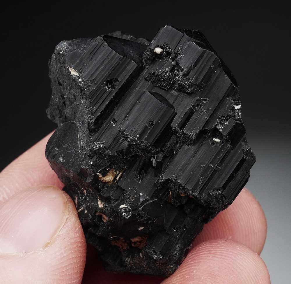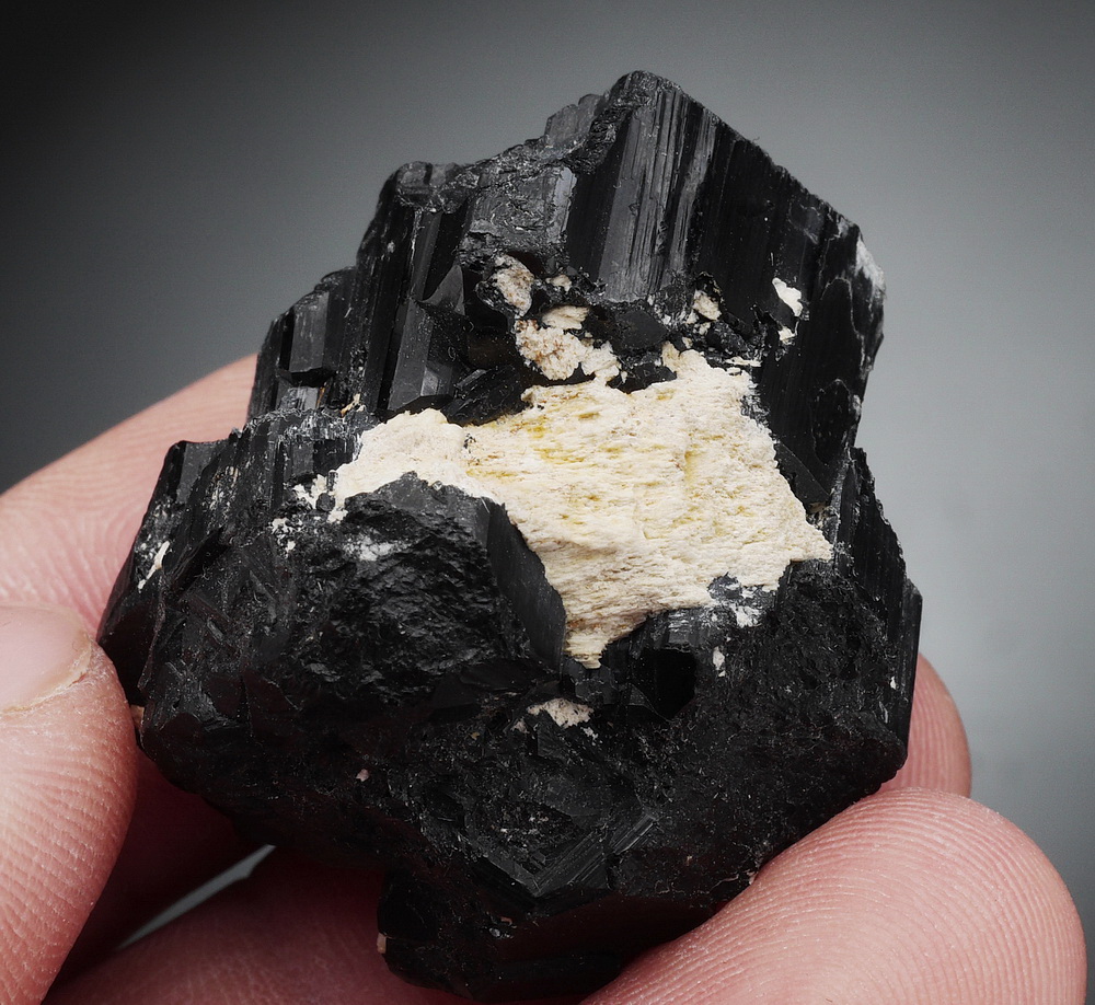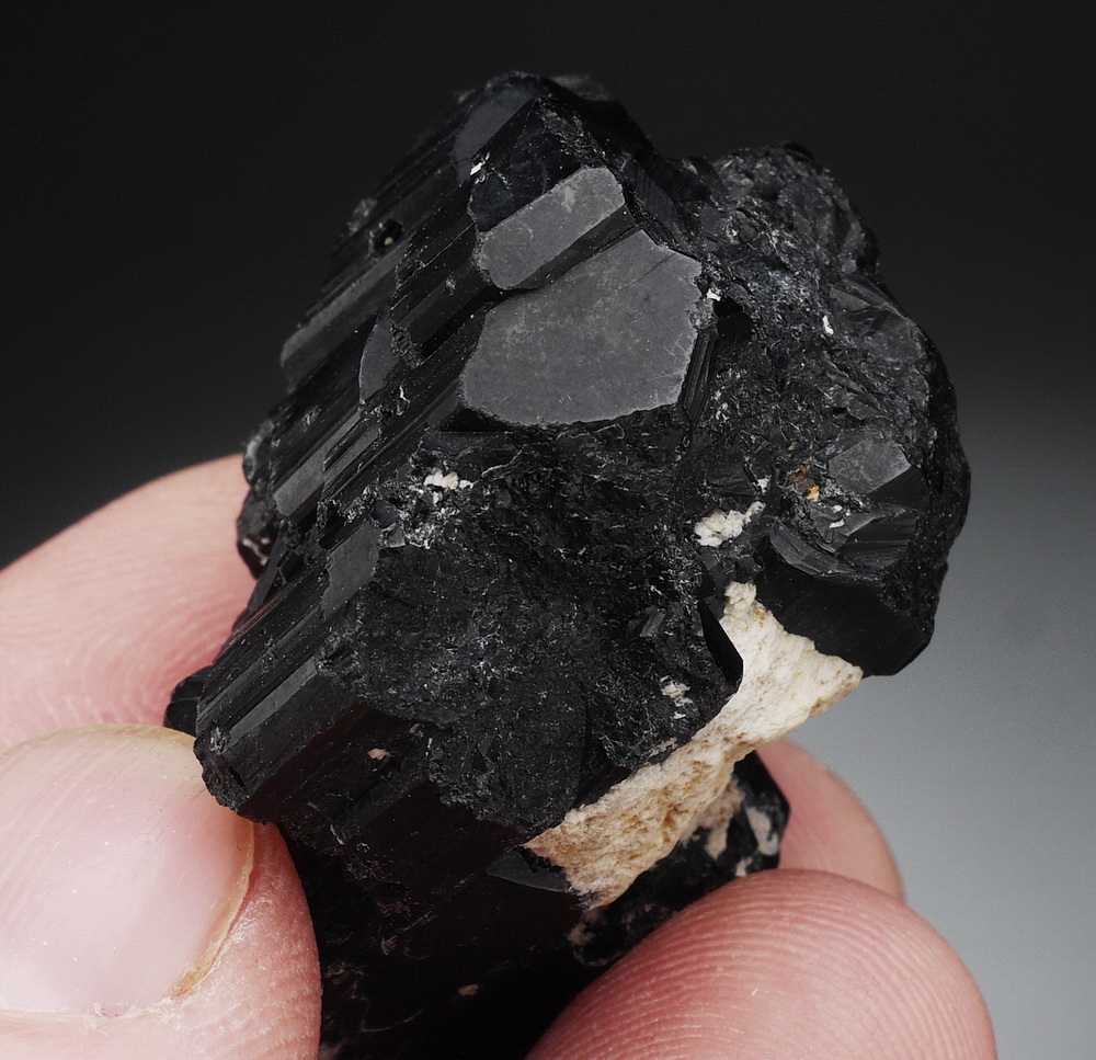 Bardzo błyszczący i dobrze wykształcony, duży kryształ czarnego turmalinu (szerl) .