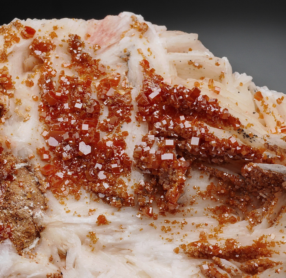 Dobrze wykształcone i błyszczące kryształy wanadynitu osadzone na matrixie - baryt