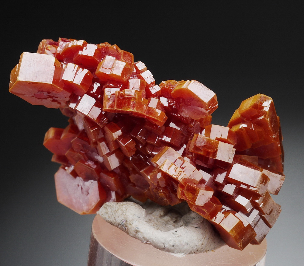 Dobrze wykształcone i błyszczące kryształy wanadynitu.