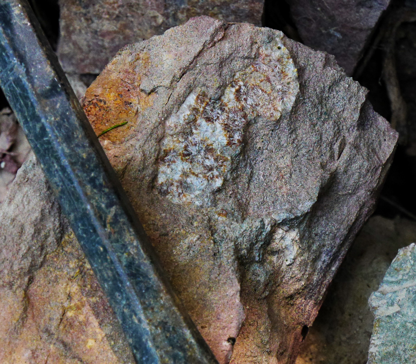 Główny minerałem poszukiwanym przez kolekcjonerów jest wavellit - zasadowy fosforan glinu, powstający w niskotemperaturowych warunkach hydrotermalnych, w skałach zasobnych w glin. Wavellit wypełnia tutaj szczeliny w obrębie piaskowców, bardzo często prostopadłe do powierzchni uławicenia i zazwyczaj wypełnione ilastym materiałem, który potrafi skutecznie maskować skupienia minerałów. Wavellit przyjmuje odcienie od białego po żółte i zielone, rzadziej brązowe i wykształcony jest w postaci skupień promienistych (na przełamanych powierzchnia spękań) a także kulistych lub sferolitycznych w pustkach szczelin. Te skupienia zwykle mają wielkość kilku milimetrów (s. kuliste) do 2-3 cm w przypadku przełamanych skupień promienistych tworzących charakterystyczne "słońca". Potrafią one tworzyć całe powierzchnie wielu połączonych "słoneczek" niekiedy o powierzchni 100-200cm kwadratowych. Towarzyszą mu czasami inne rzadkie minerały jak cacoxenit, strengit, variscyt, trudniejsze do znalezienia natomiast dość powszechne są rdzawe związki żelaza w postaci limonitu.