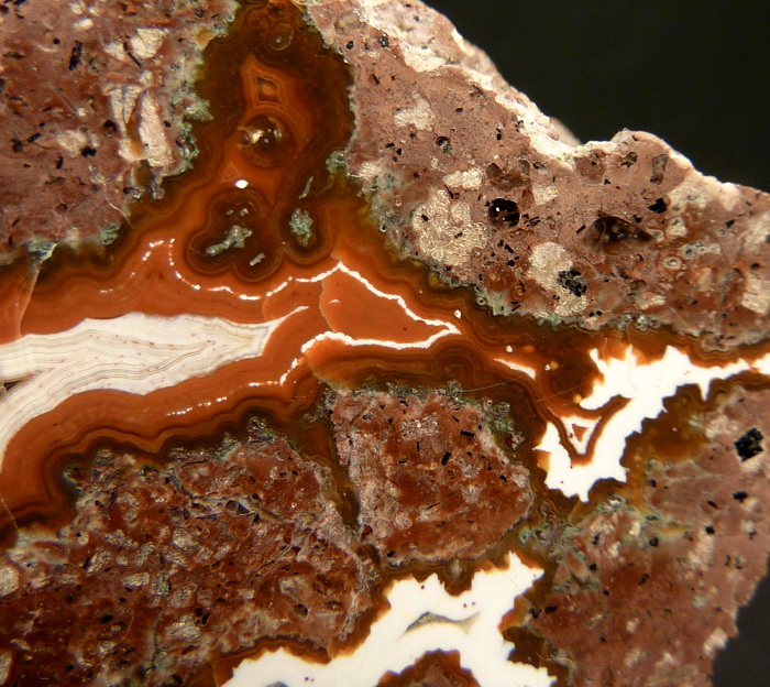 Przecięty i wypolerowany permski porfir z agatem o pięknym niepowtarzalnym rysunku.