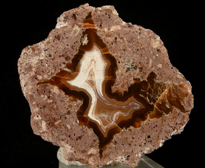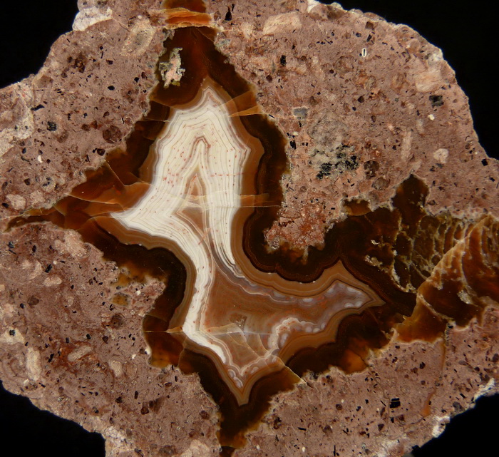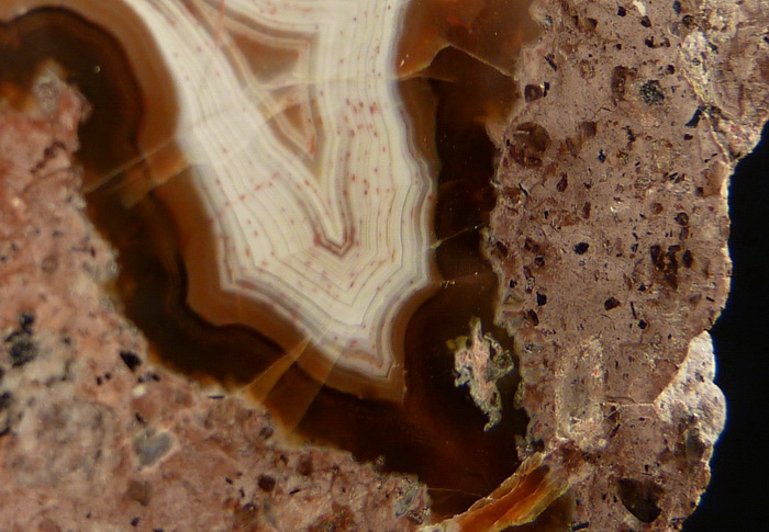 Przecięty i wypolerowany permski porfir z agatem o pięknym niepowtarzalnym rysunku.