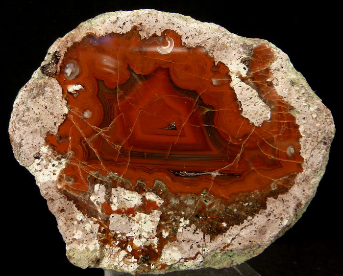 Przecięty i wypolerowany permski porfir z agatem o pięknym niepowtarzalnym rysunku.