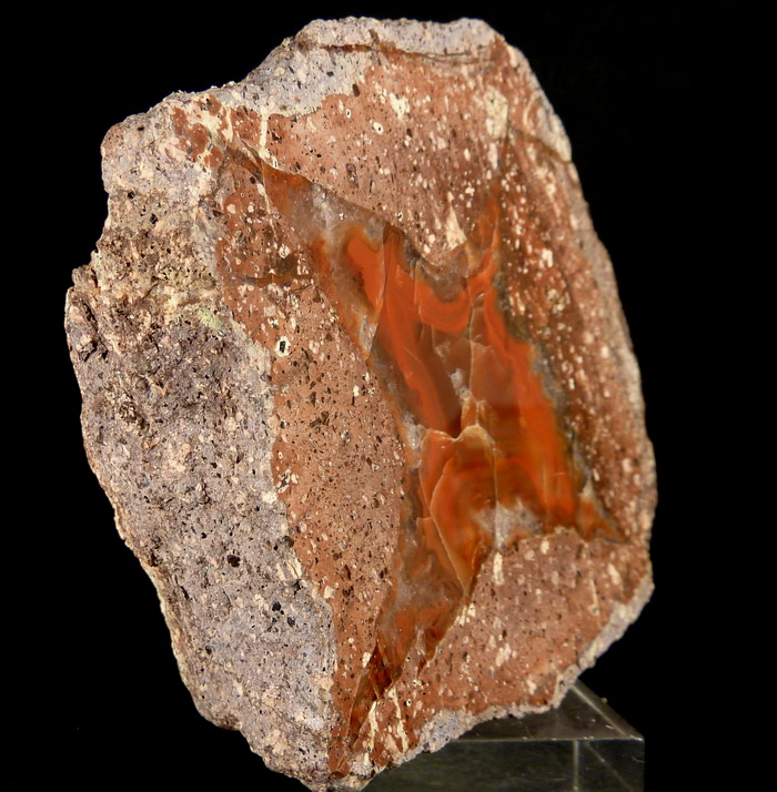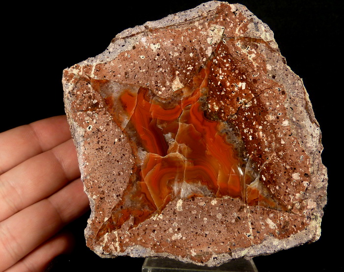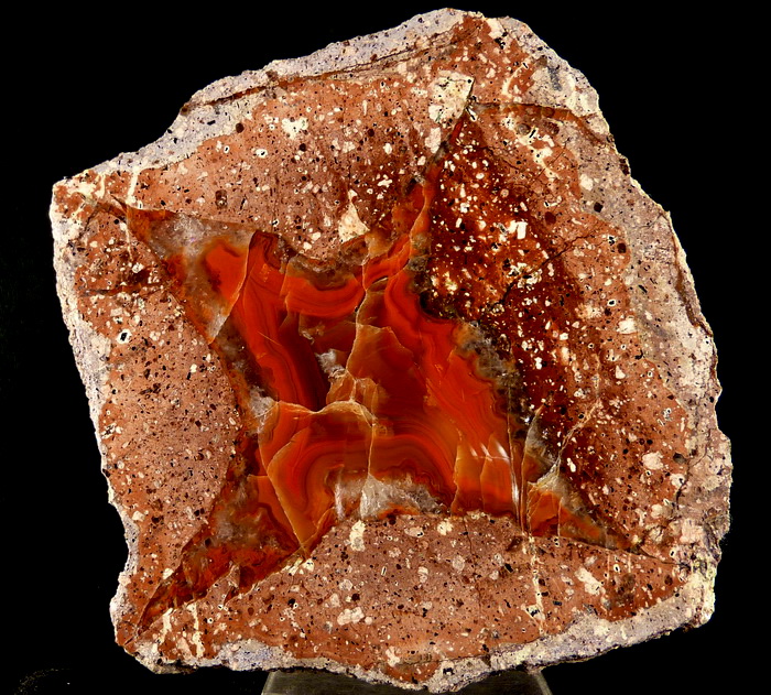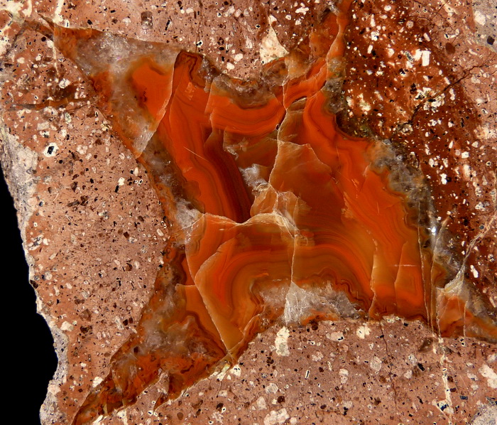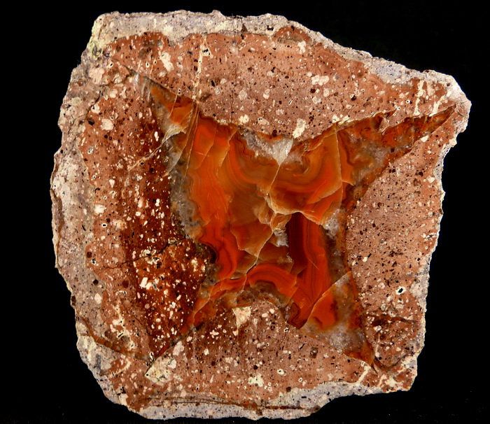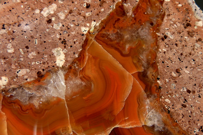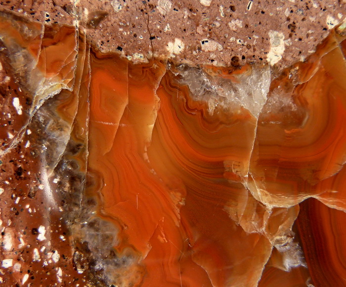 Przecięty i wypolerowany permski porfir z agatem o pięknym niepowtarzalnym rysunku.