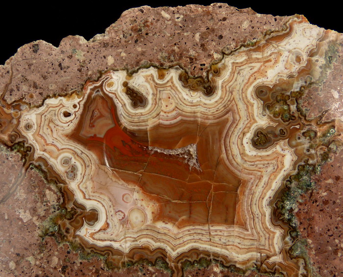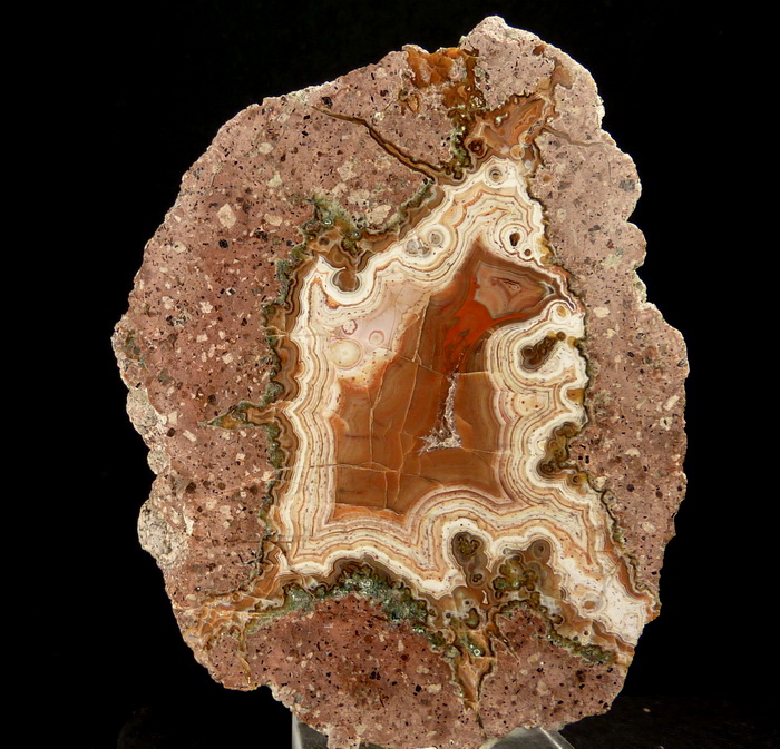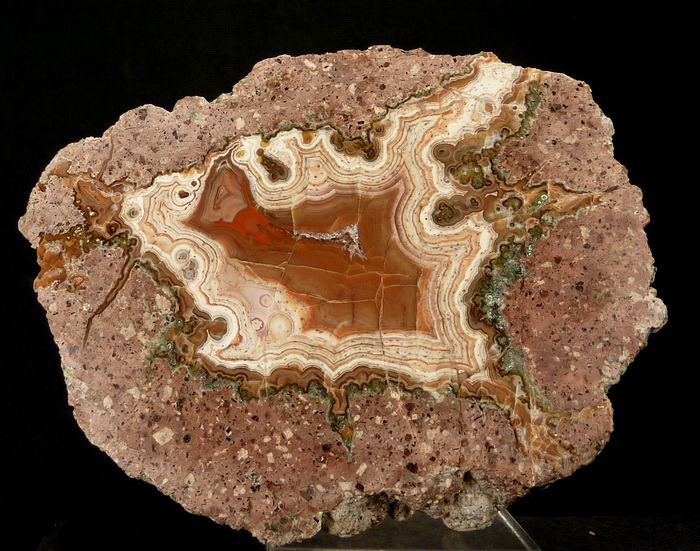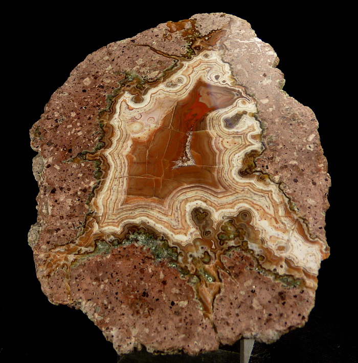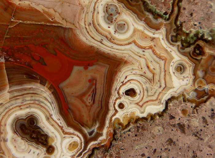 Przecięty i wypolerowany permski porfir z agatem o pięknym niepowtarzalnym rysunku.