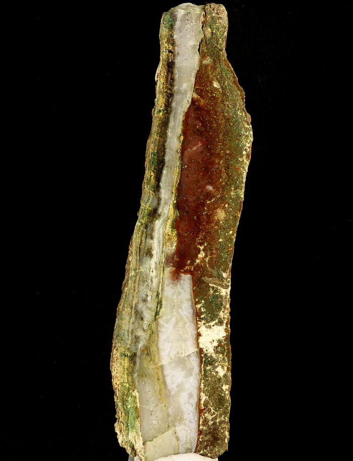 Polerowana płytka agatu żyłowego z kwarcem z kamieniołomu diabazu Niedźwiedzia Góra koło Krzeszowic
