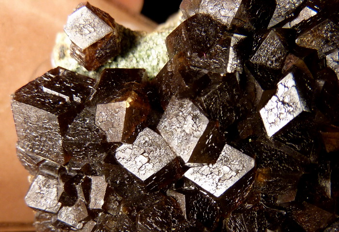 Pięknie wykształcone kryształy andradytu (granat żelazowy) na matrixie.