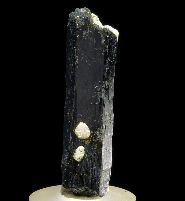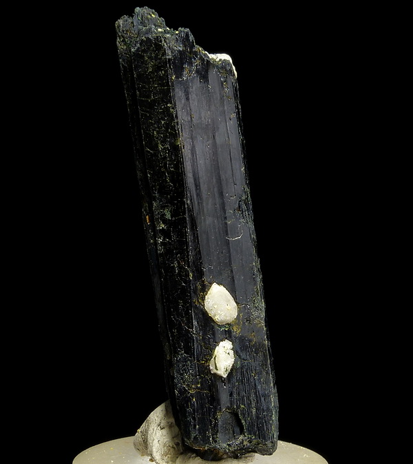 Błyszczący i duży kryształ arfvedsonitu z kryształami ortoklazu.