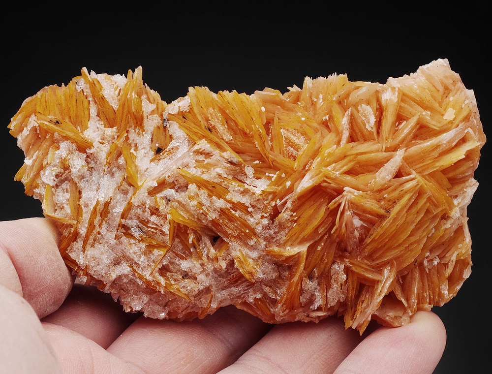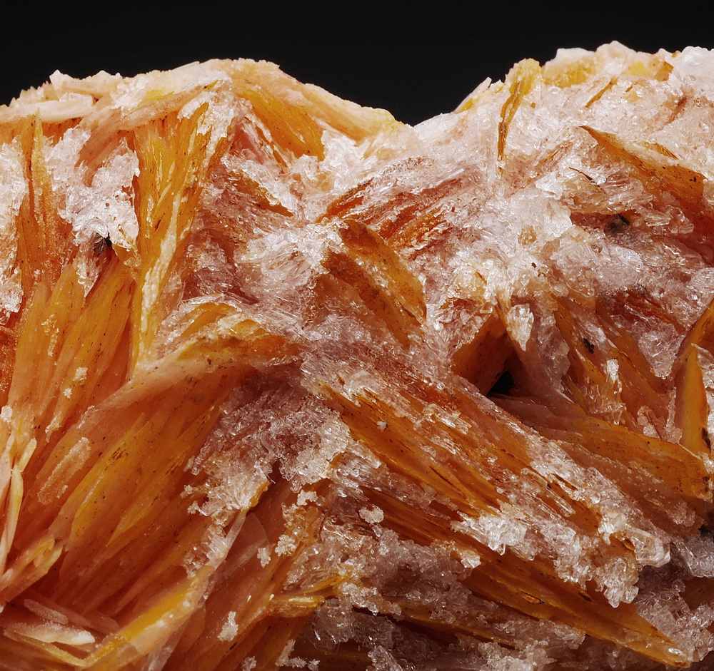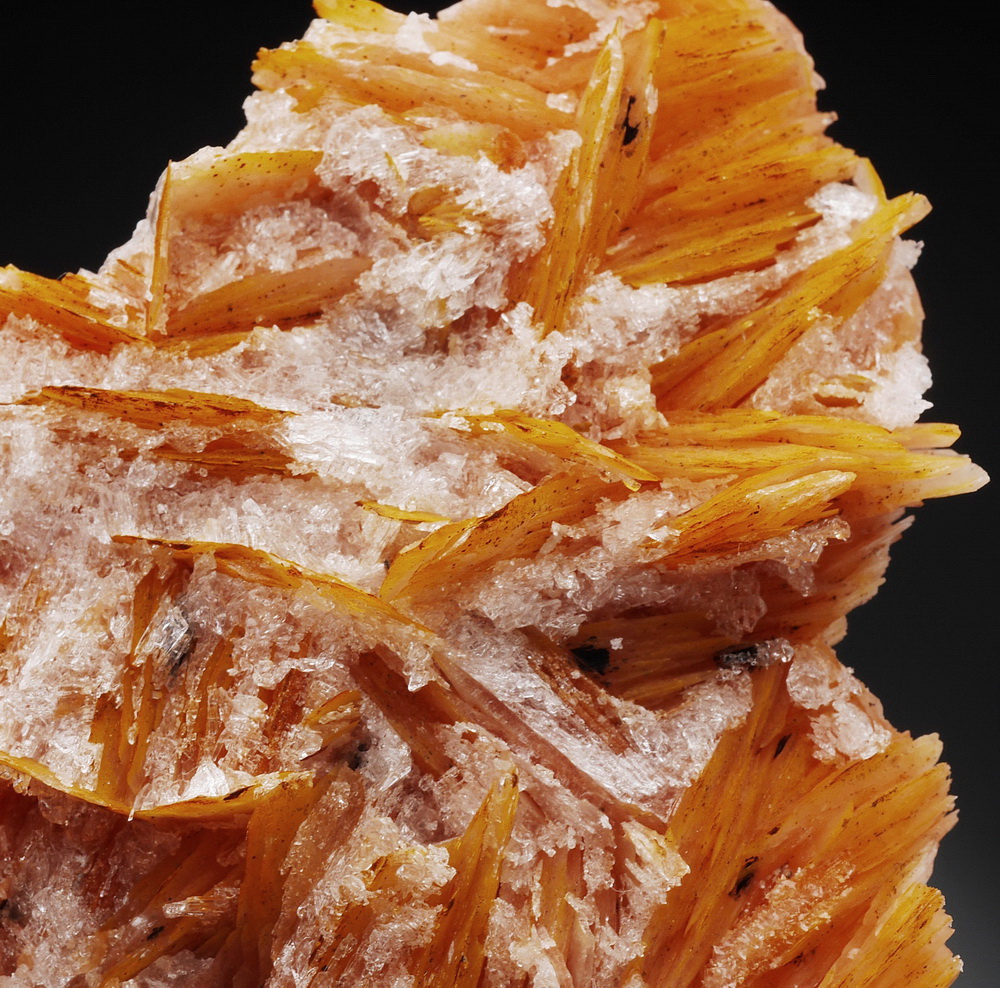 Szczotka blaszkowych kryształów barytu z cerusytem.