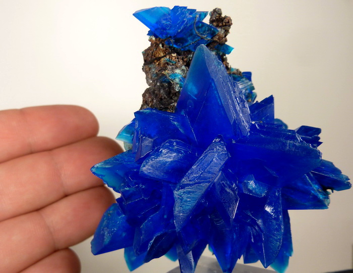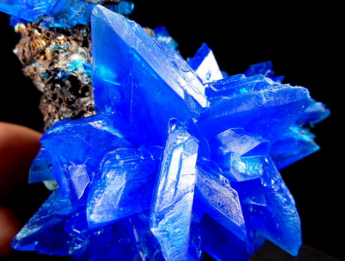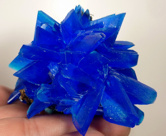 Duże, sztucznie wychodowane kryształy niebieskiego chalkantytu.