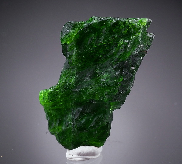 Okaz ciekawego chromodiopsydu (diopsyd chromowy) - piękna barwa przy podświetleniu.