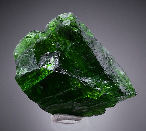 Okaz ciekawego chromodiopsydu (diopsyd chromowy) - piękna barwa przy podświetleniu.