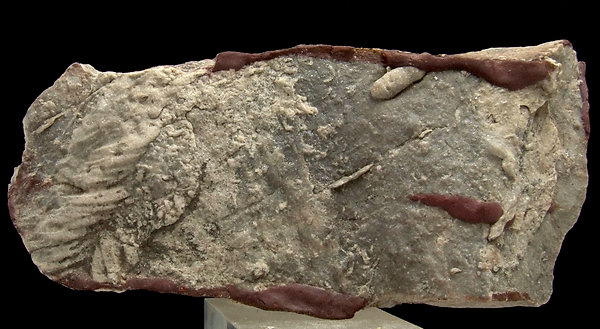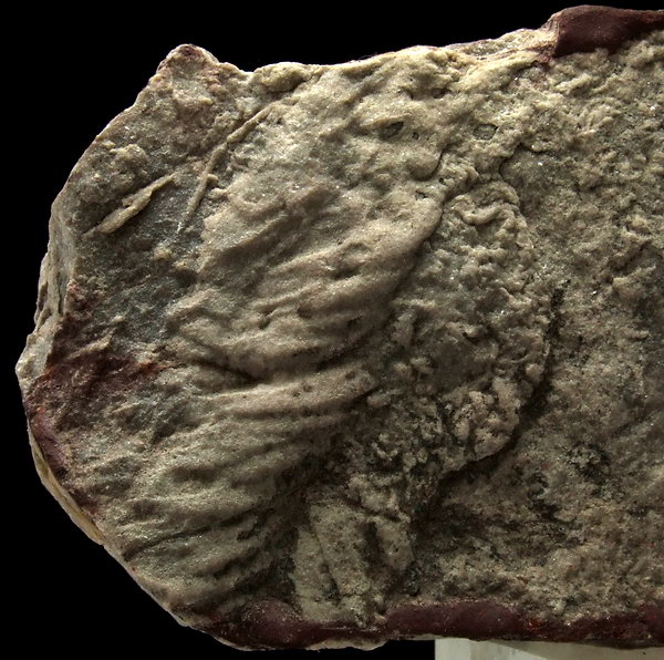 Płyta piaskowca kwarcytycznego ze śladem kroczenia trylobita Cruziana.
