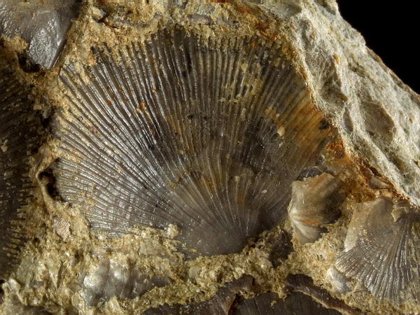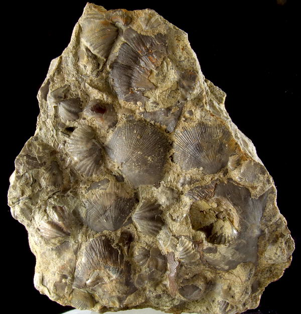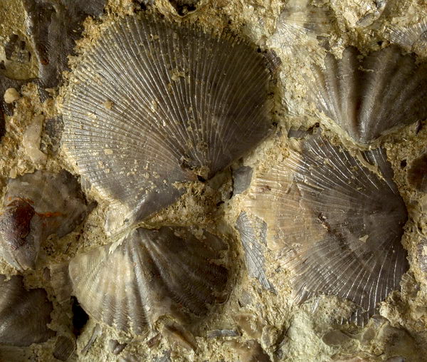 Dobrze zachowane dewońskie brachiopody (kilka gatunków) na matrixie.
