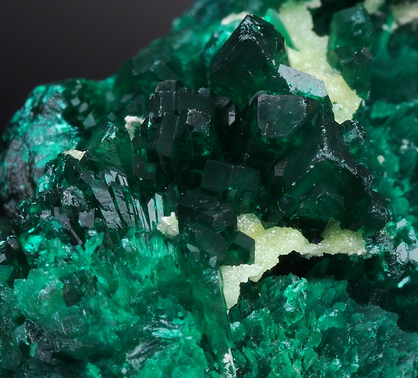 Zrost kryształów intensywnie zielonego dioptazu !!
