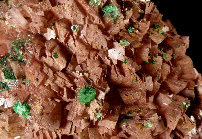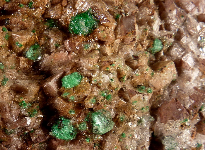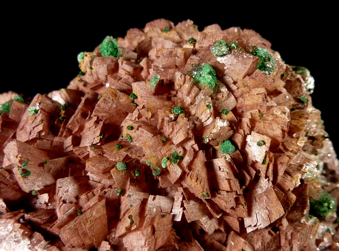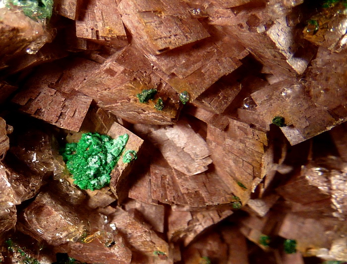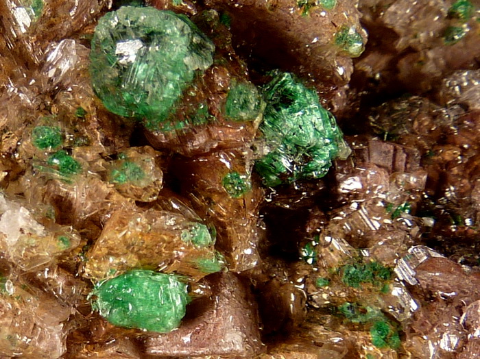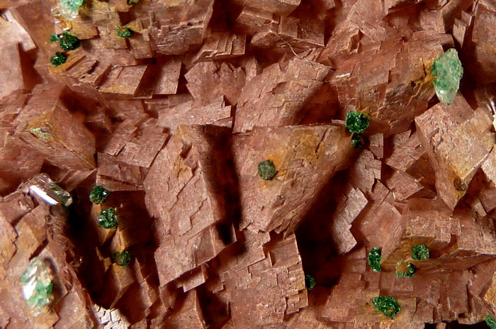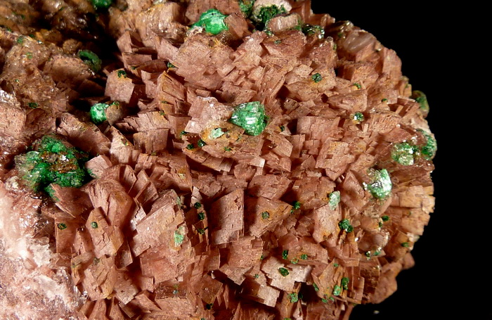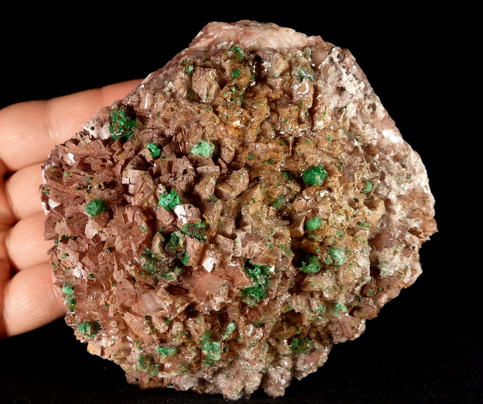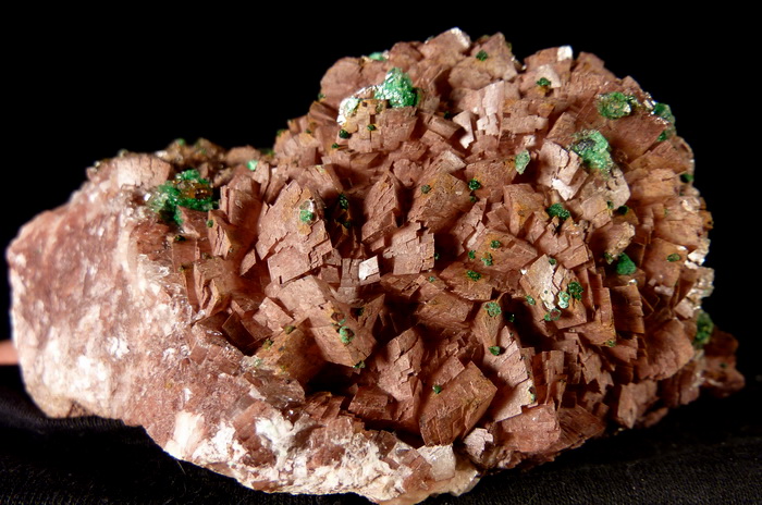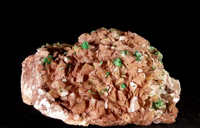 Duża szczotka rzadkiego brochantytu wraz z przezroczystym gipsem na dobrze wykształconych kryształach dolomitu.