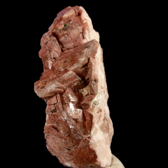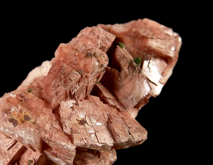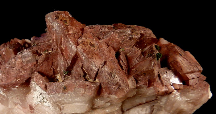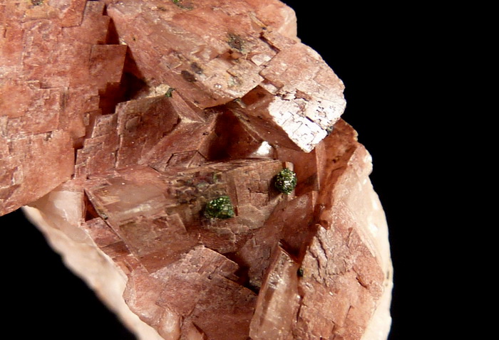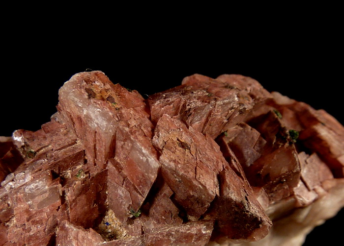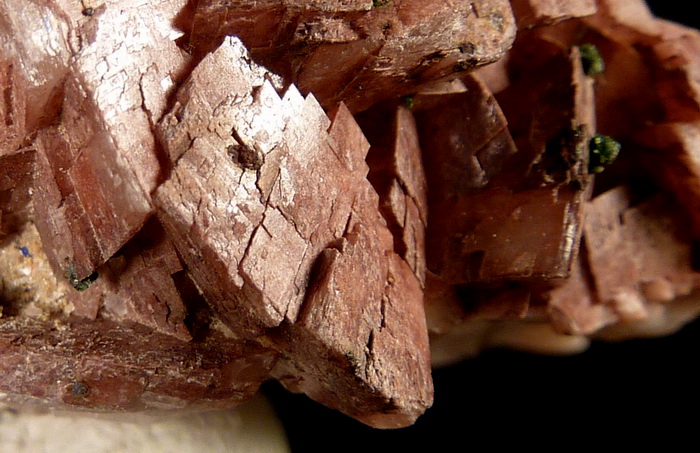 Dobrze wykształcone kryształy dolomitu wraz z niewielkimi skupieniami zielonego brochantytu.