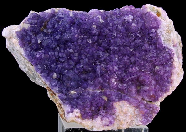 Szczotka błyszczących kryształów fluorytu osadzonych na kwarcowym matrixie. Super okaz, intensywna barwa !!