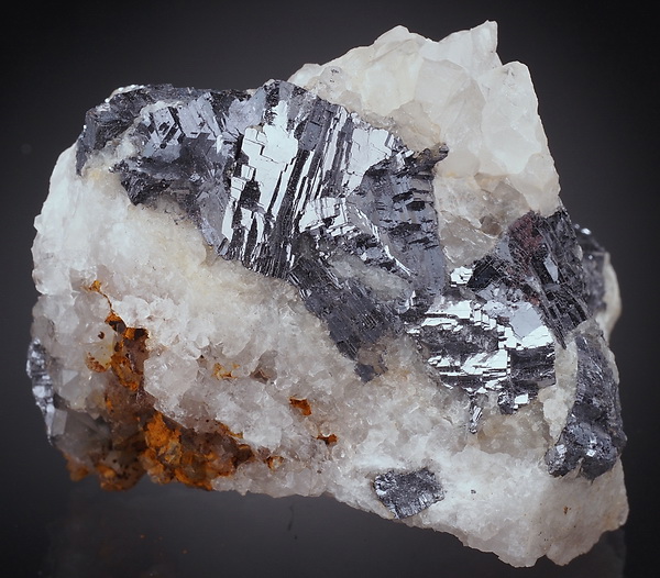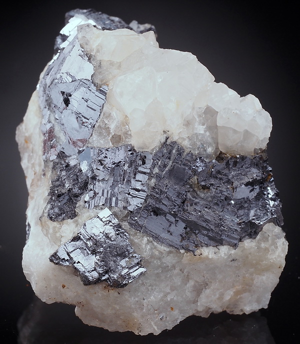 Bardzo błyszczace skupienia srebrzystej galeny w kwarcu.