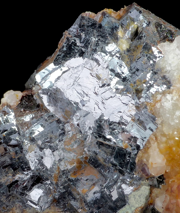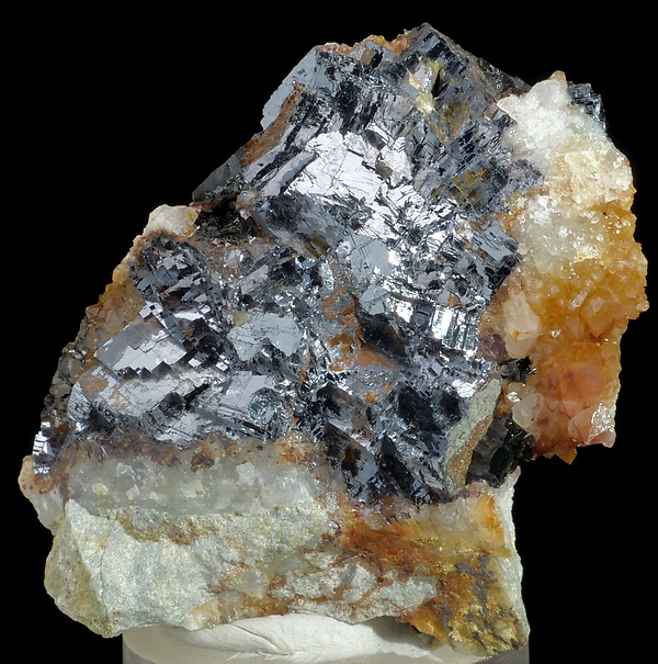Bardzo błyszczace sklupienia galeny w kwarcu.