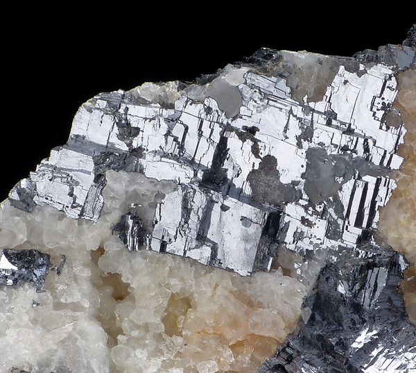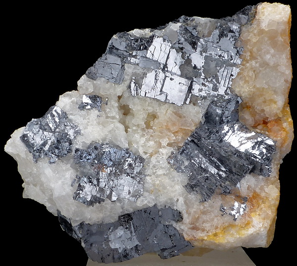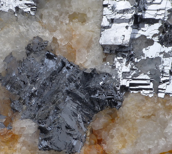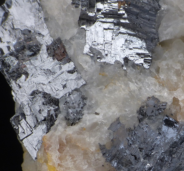 Bardzo błyszczace sklupienia galeny w kwarcu.