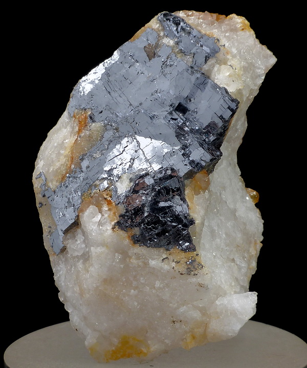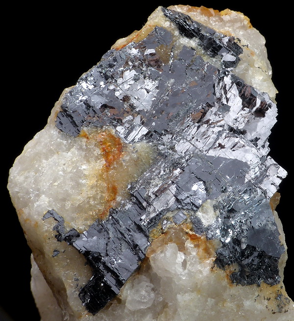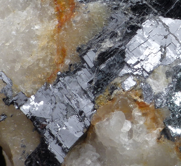 Bardzo błyszczace sklupienia galeny w kwarcu.
