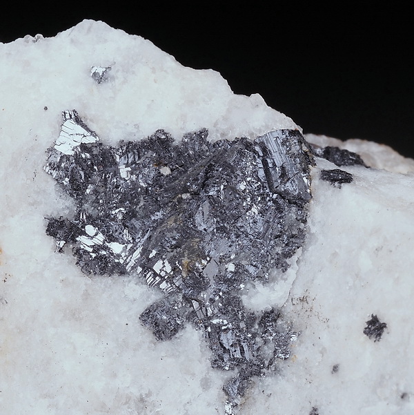 Bardzo błyszczace sklupienia galeny w kwarcu.