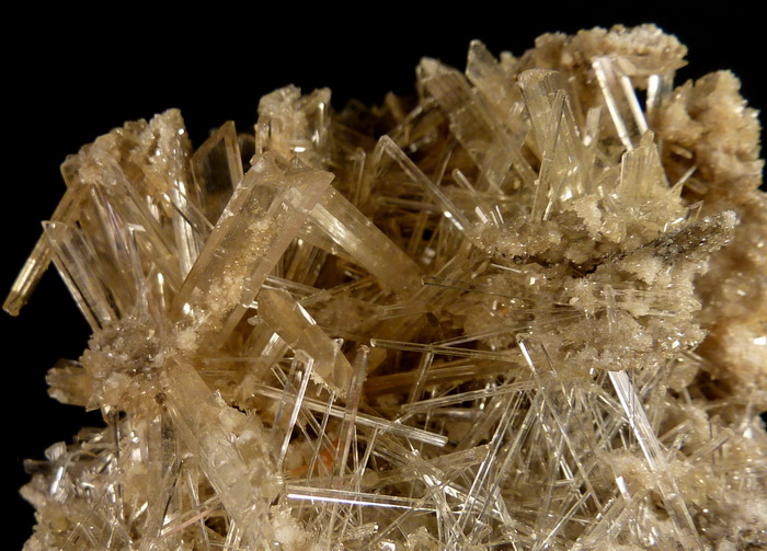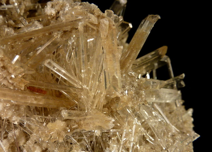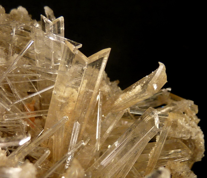Ciekawa szczotka przezroczystych ładnie wykształconych kryształów gipsu z kopalni miedzi KGHM.