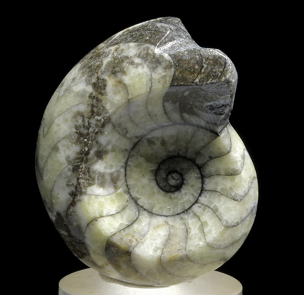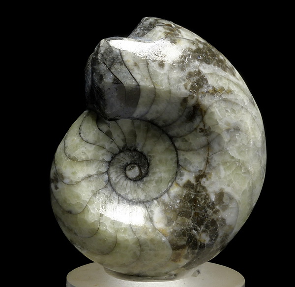 Ciekawy polerowany goniatyt - dobrze widoczne przegrody.