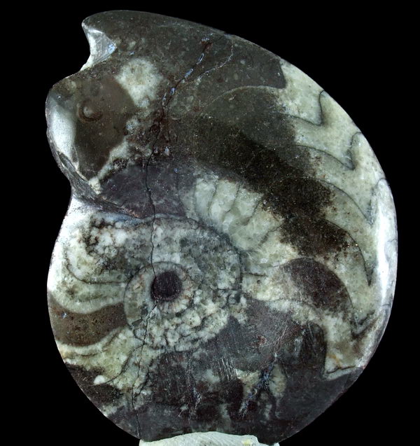 Ciekawy polerowany goniatyt - dobrze widoczne przegrody.