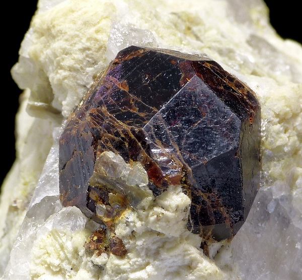 Ładnie wykształcone kryształy granatu na kontrastowym matrixie.