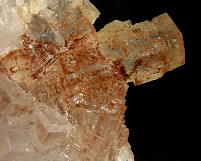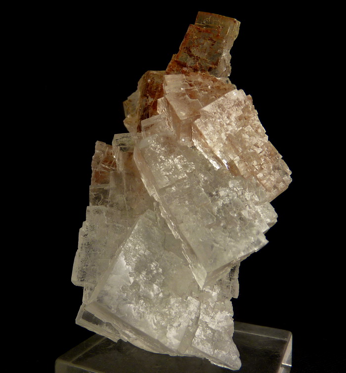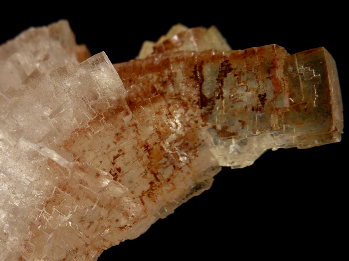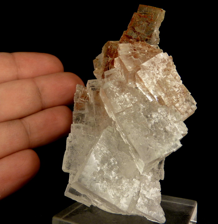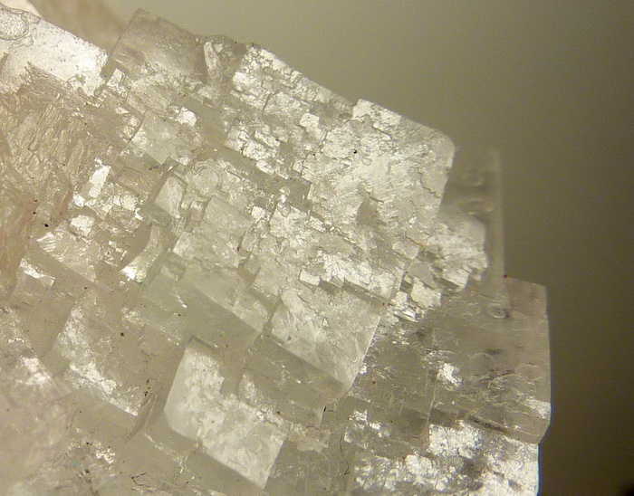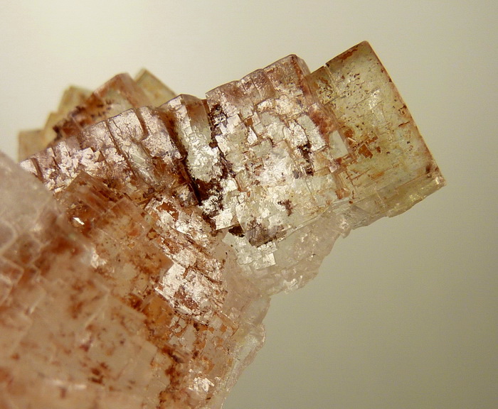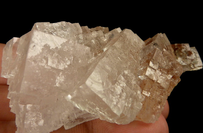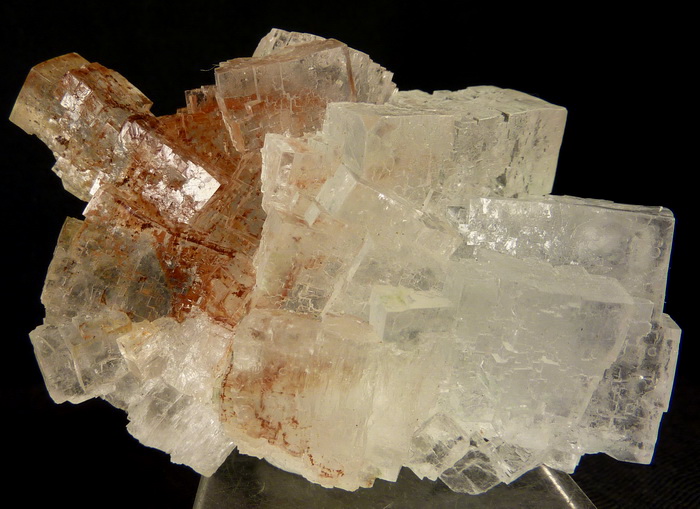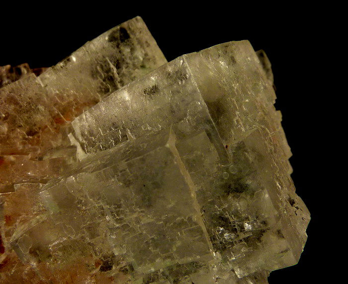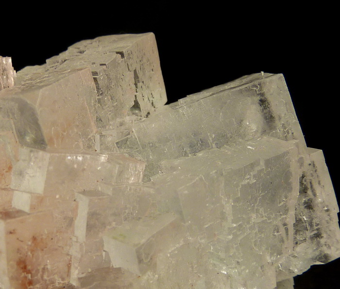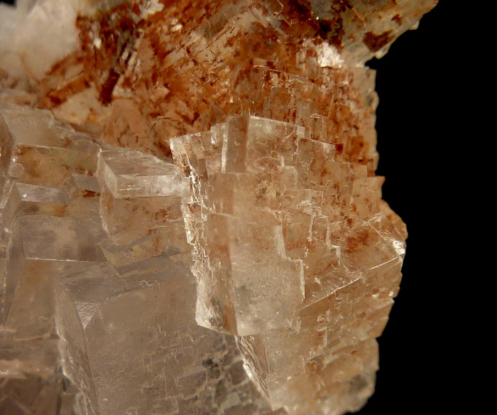Ciekawy okaz bardzo dobrze wykształconych kryształów przezroczystego halitu, część kryształów zawiera inkluzje tworzące fantomy wzrostu.