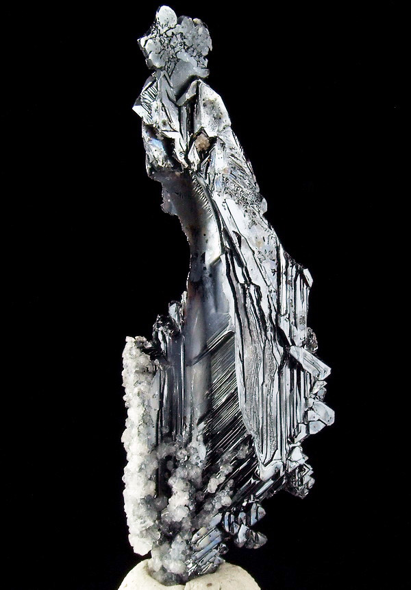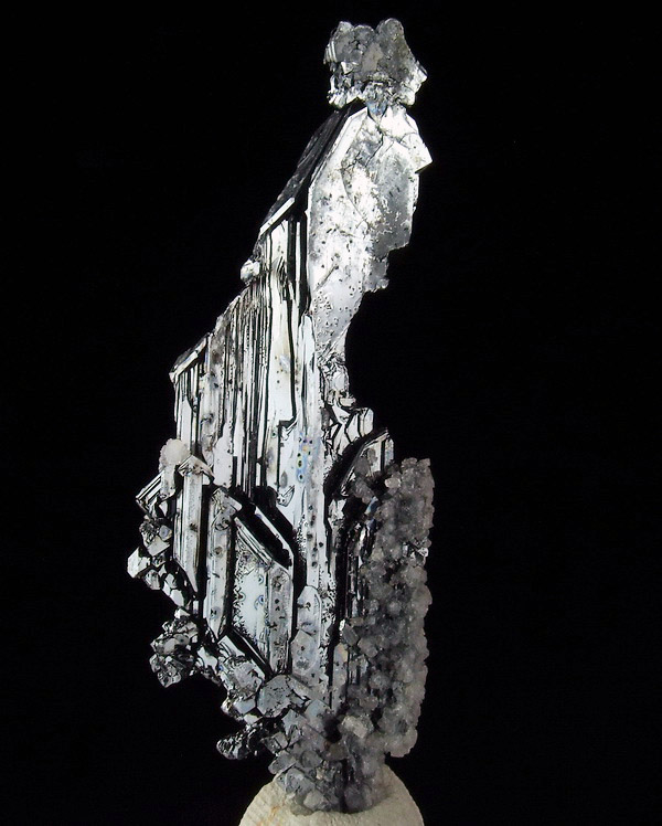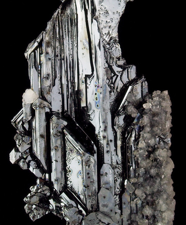 Blaszkowy, błyszczący kryształy hematytu z ciekawą szkieletową strukturą.