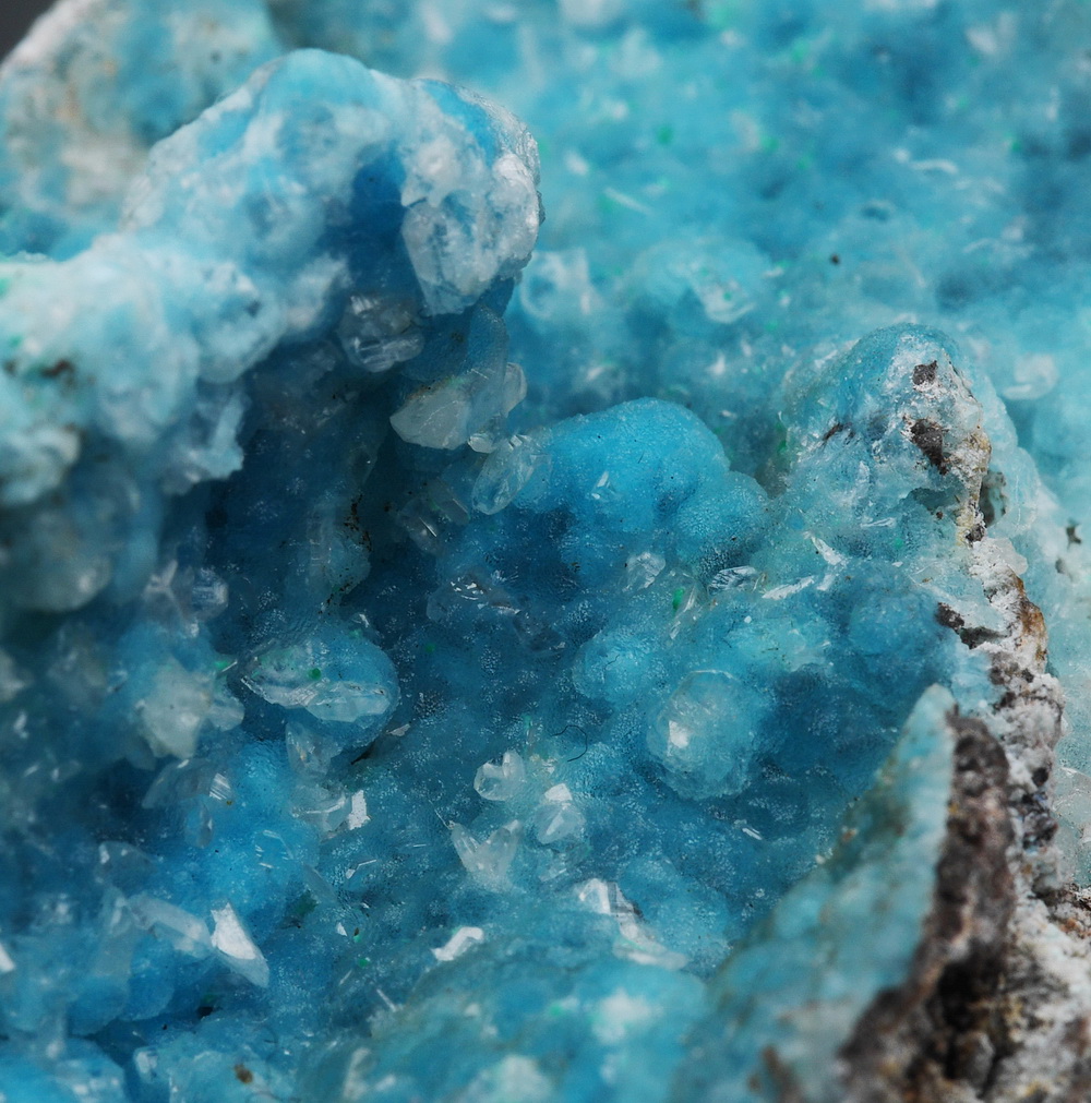 Skupienia naciekowych / kolomorficznych skupień hemimorfitu.