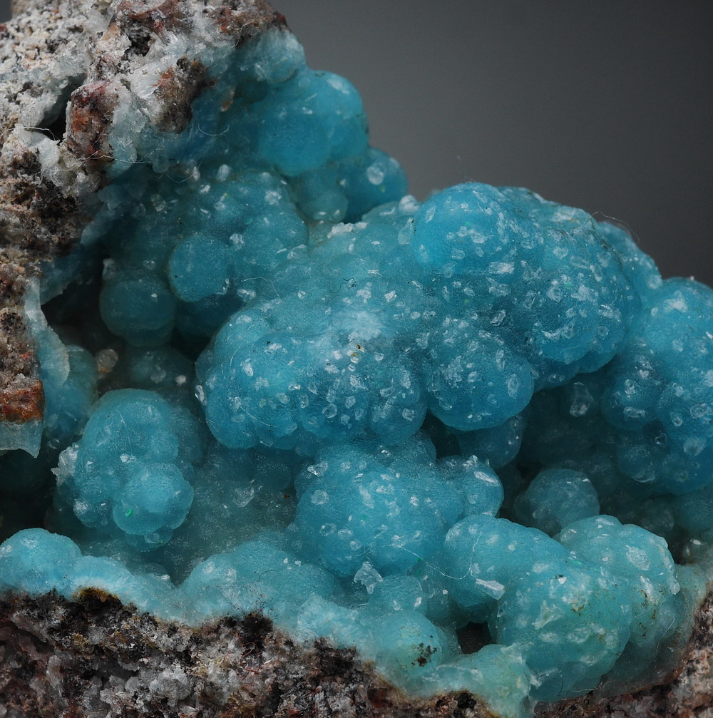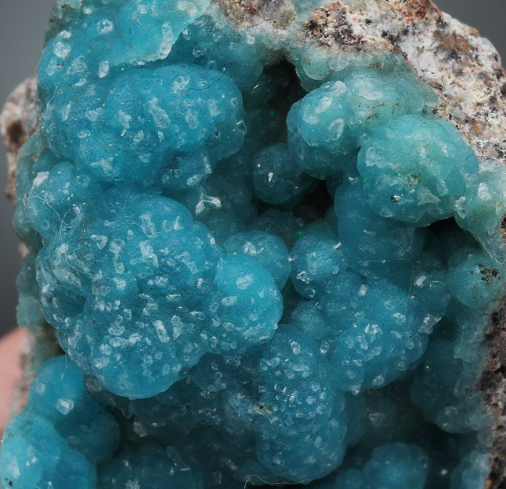 Skupienia naciekowych / kolomorficznych skupień hemimorfitu.