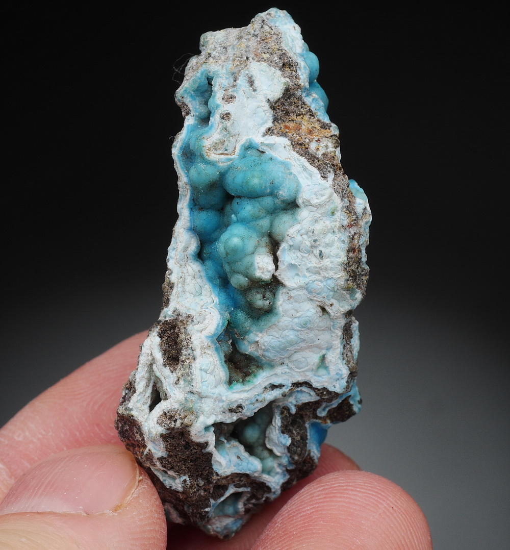 Skupienia naciekowych / kolomorficznych skupień hemimorfitu.