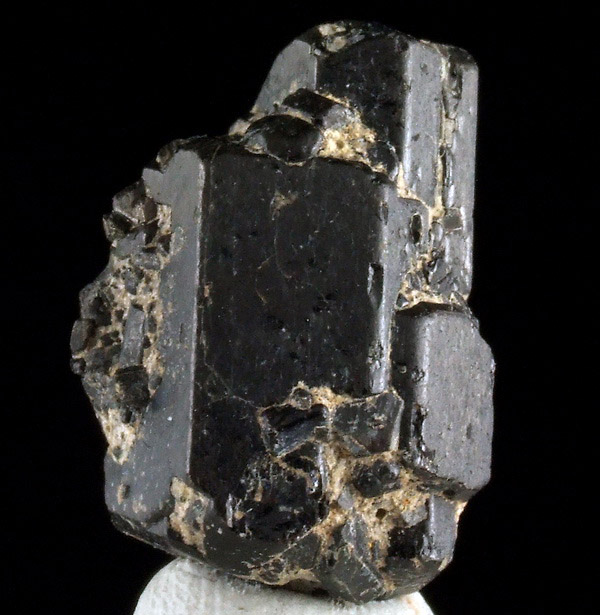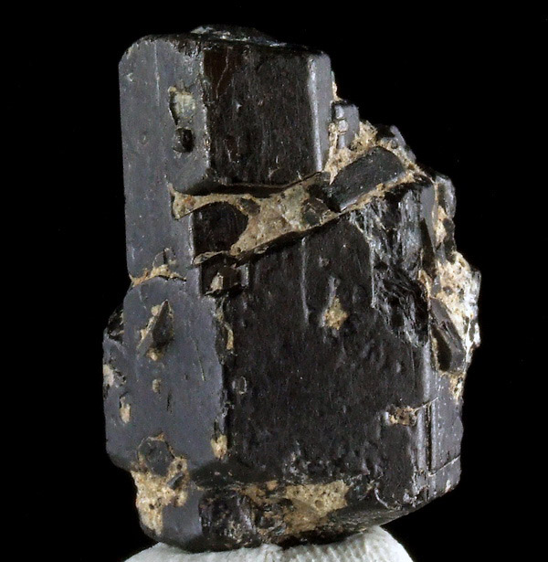 Czarny, błyszczący dobrze wykształcony kryształ hornblendy.
