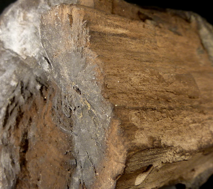 Ciekawy okaz skamieniałewgo drewna (fragment konara/gałęzi) z batonskich iłów rudonośnych.