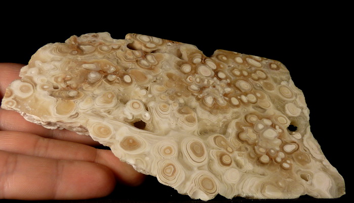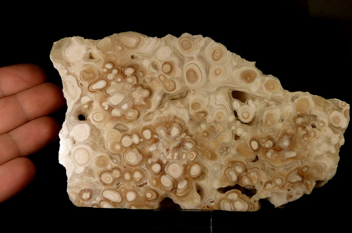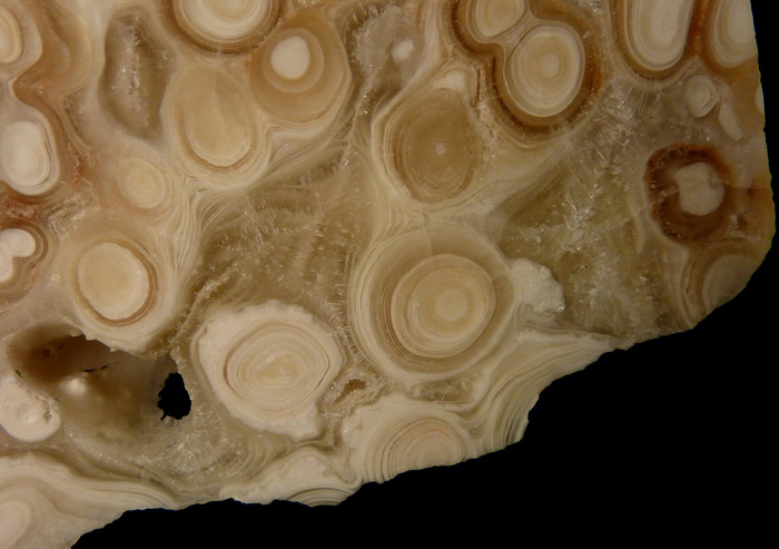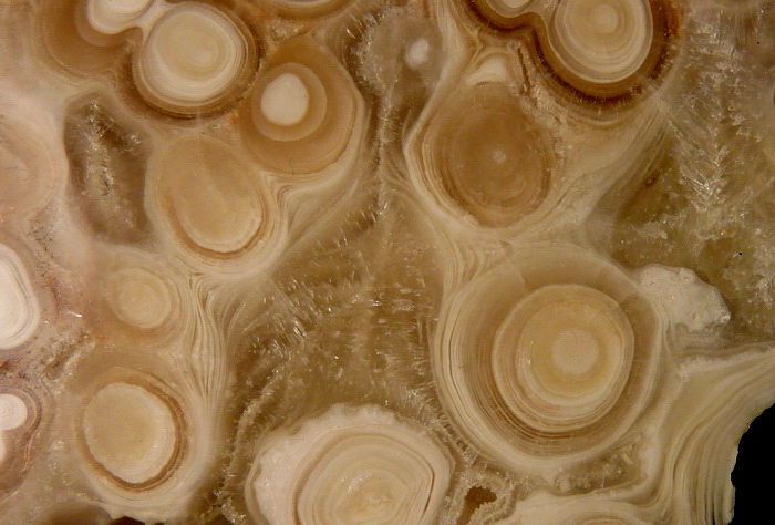 Ładna, duża polerowana płyta kalcytu naciekowego o fantazyjnych wzorach.