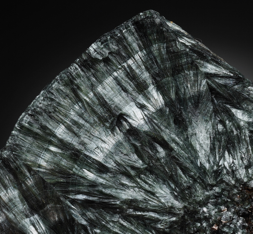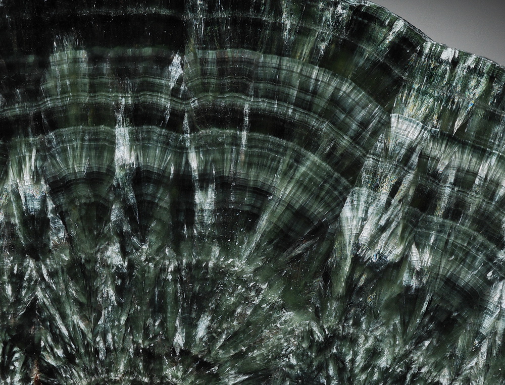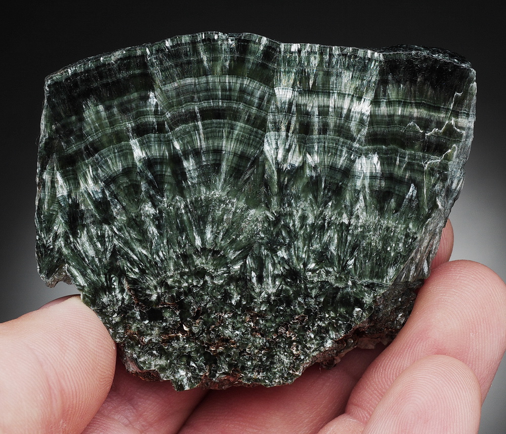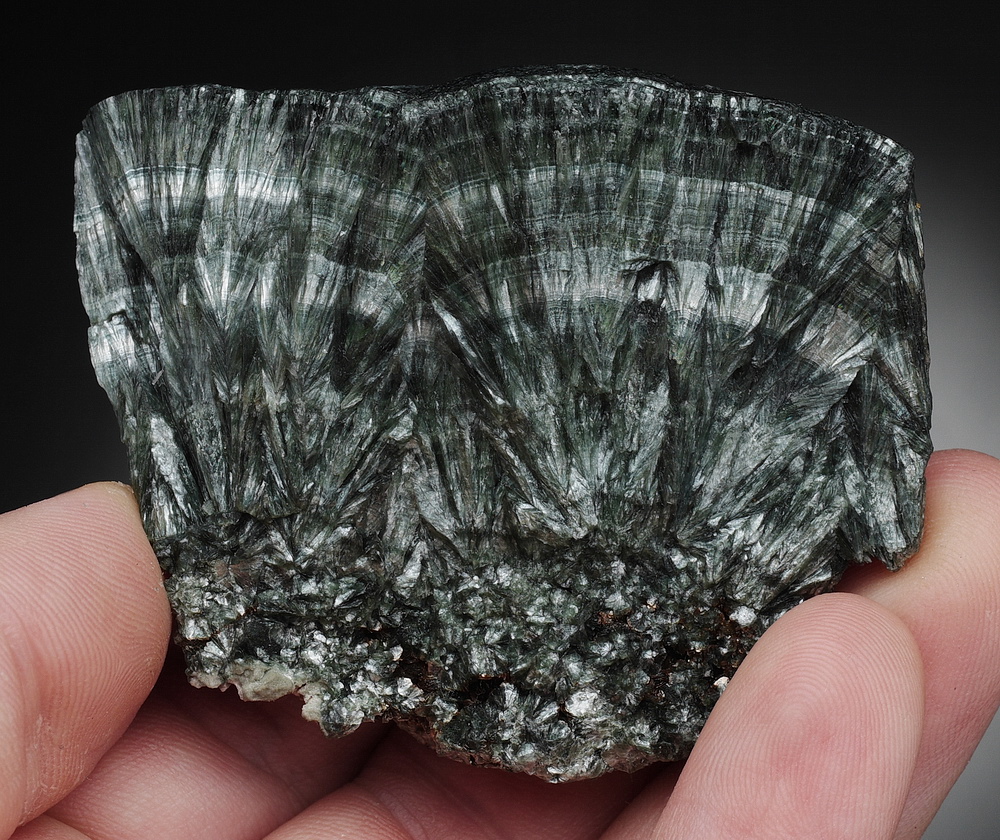 Rewelacyjne, wachlarzowe skupienia błyszczącego serafinitu - odmiany klinochloru. Okaz polerowany/