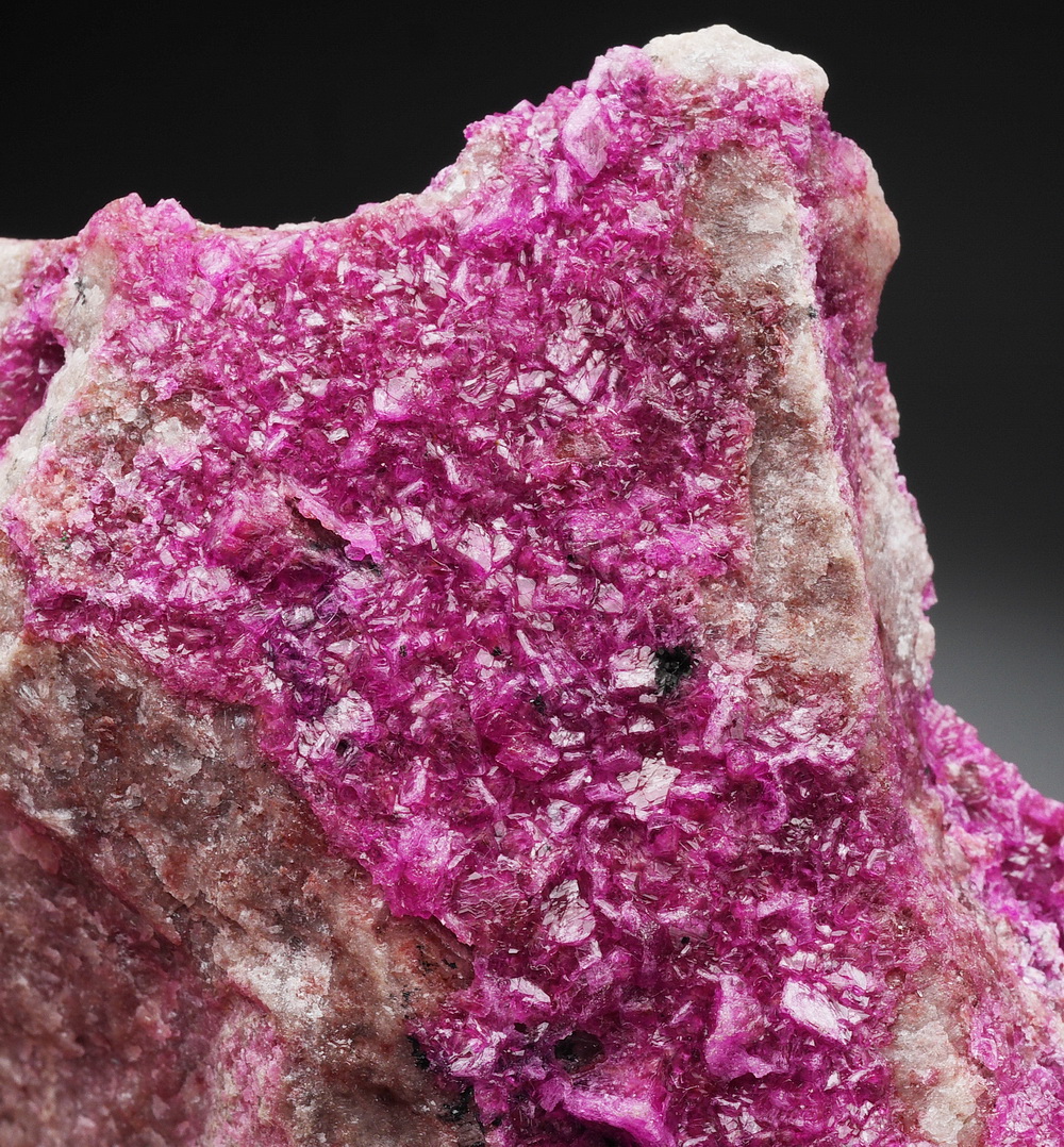 Druza błyszczących  kryształków rzadkiego kobaltodolomitu na matrixie.
