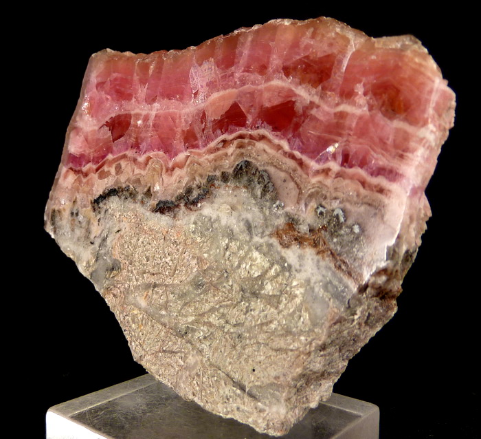 Polerowana płytka naciekowego kobaltokalcytu na matrixie.