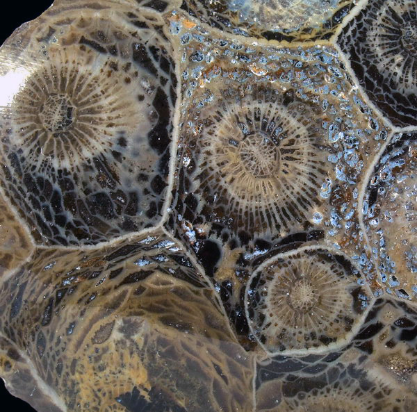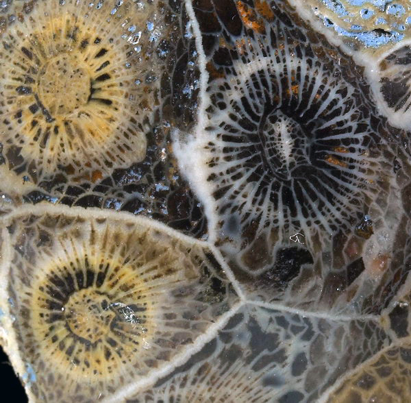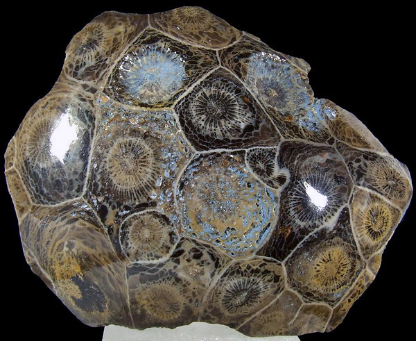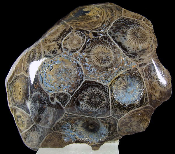Polerowany okaz dobrze koralowca kolonijnego Hexagonaria. Super widoczna budowa wewnętrzna.