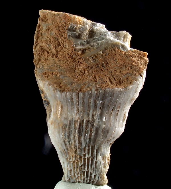 Okaz dobrze zachowanego koralowca osobniczego z dewońskiej rafy koralowej.